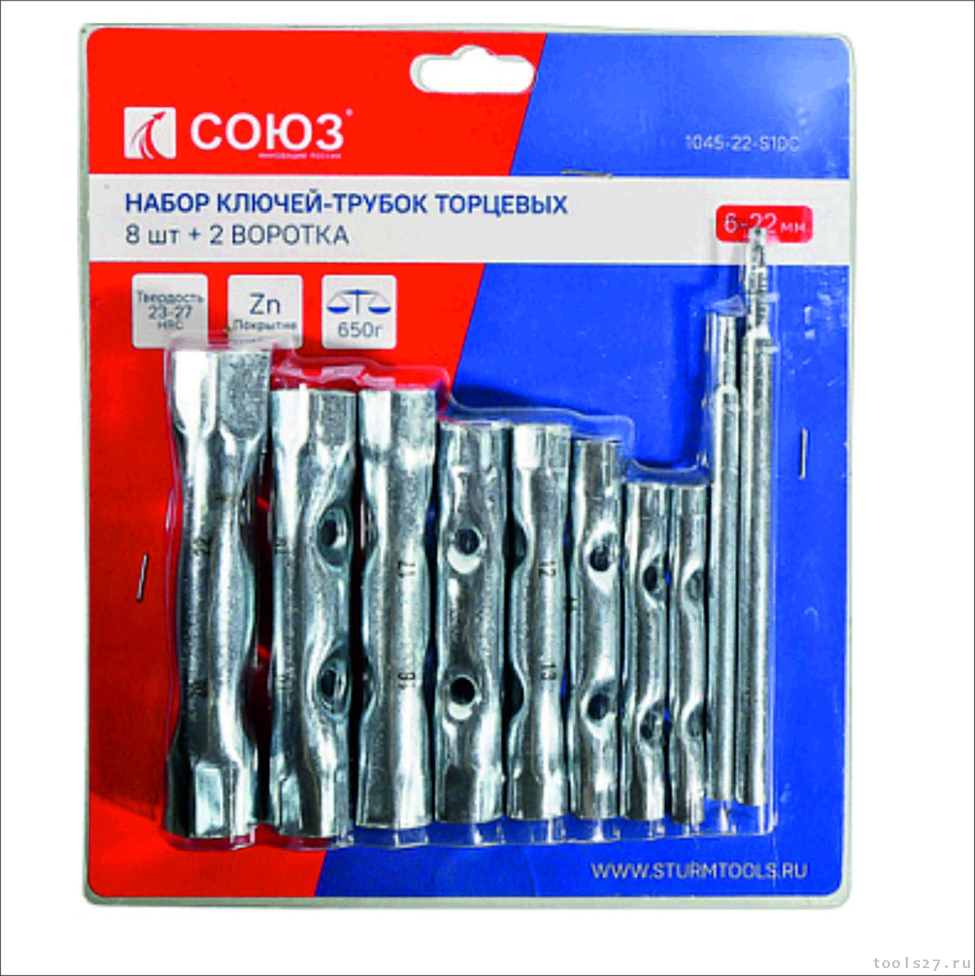 Набор ключей-трубок торцевых, 10 шт, 6 х 22 мм, 2 воротка, оцинкованные, СОЮЗ 1045-22-S10C (1368)