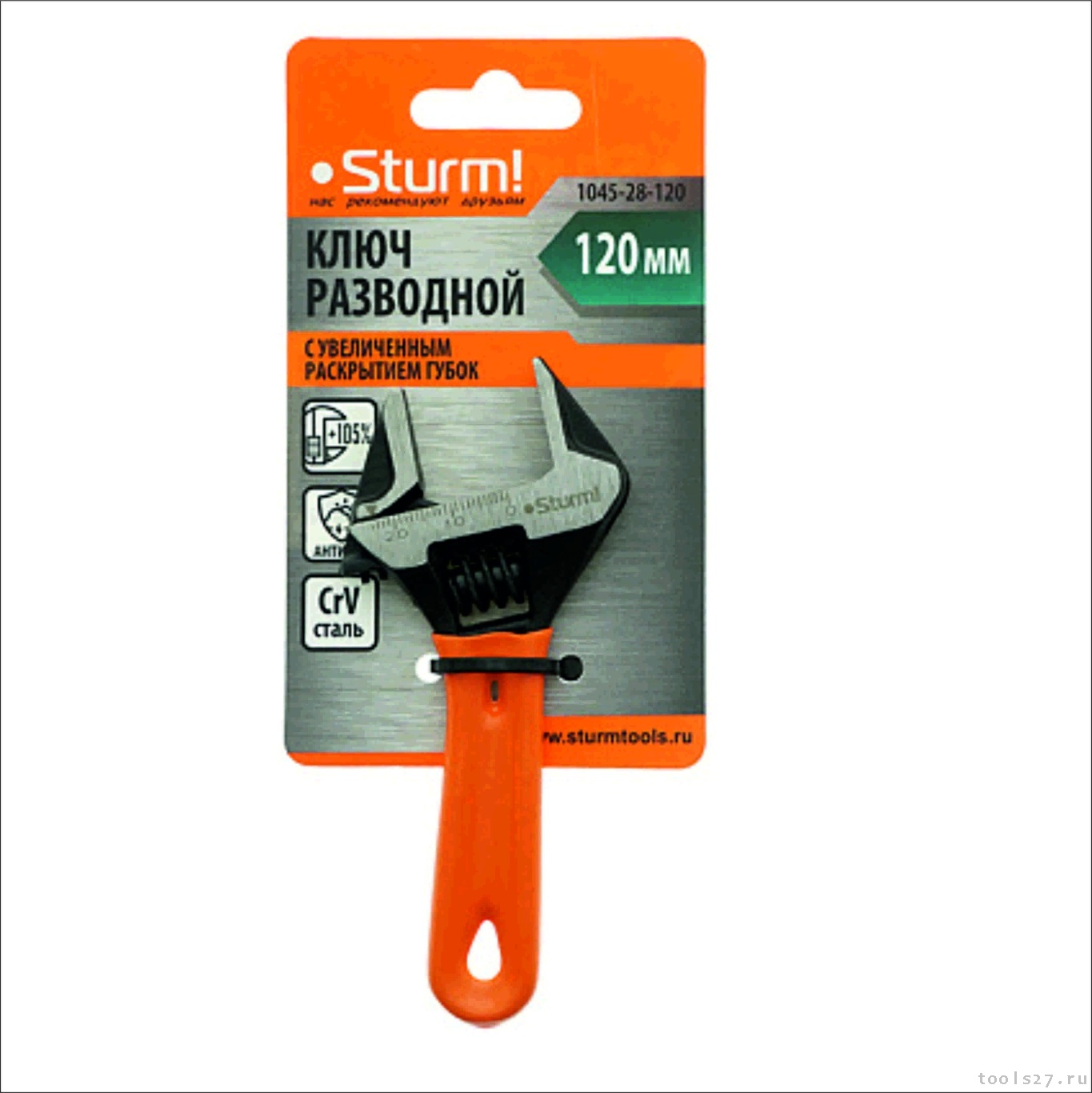 Ключ разводной с тонкими губками, 120 мм, зев 24мм, фосфатированный, Sturm! 1045-28-120 (1369)