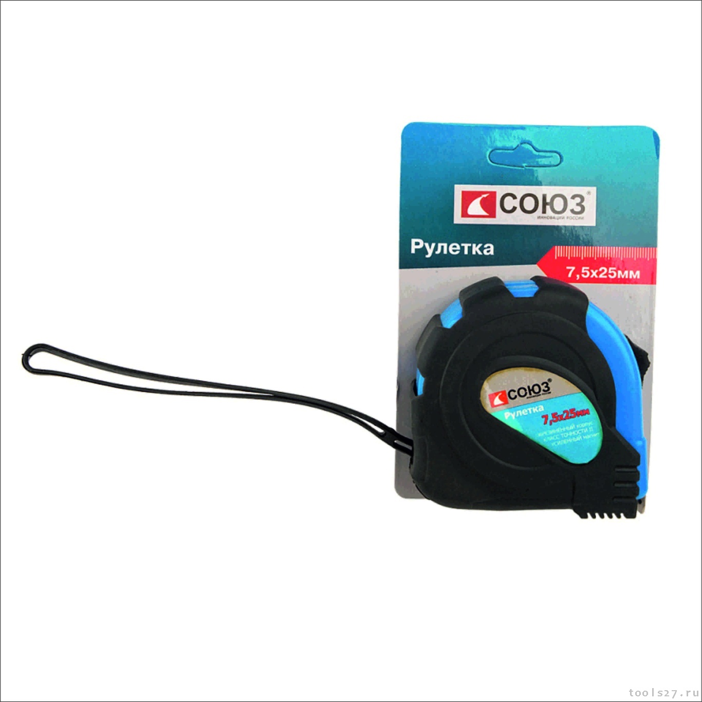 Рулетка 7,5х25мм, обрезиненная, магнит на зацепе, СОЮЗ 21825 (1390)