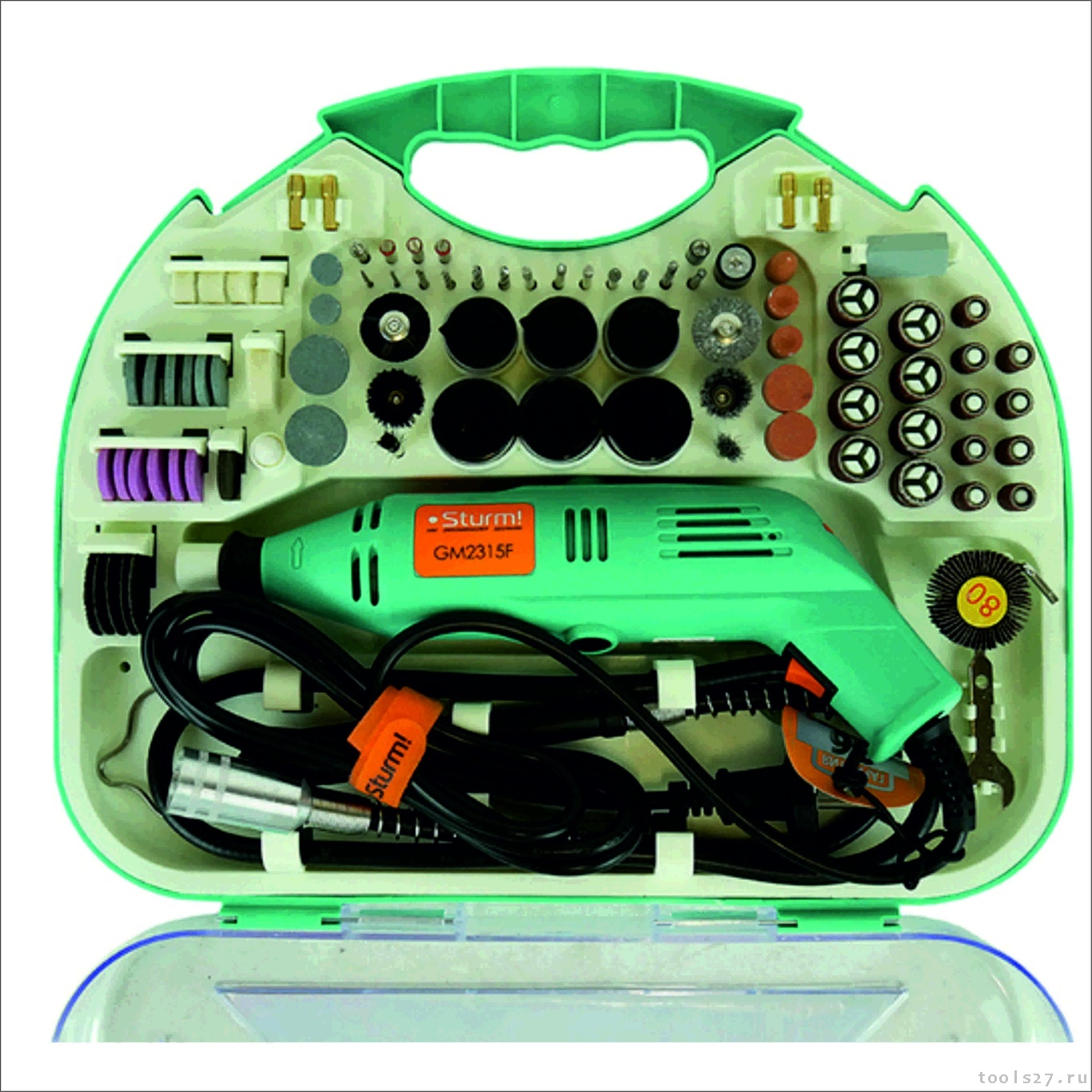 Модель позволяет выбрать оптимальный технологический режим для конкретного вида материала с помощью предварительной установки скорости вращения вала плавным регулятором на верхней части корпуса. В комплекте с моделью поставляется расширенный диапазон из 210 аксессуаров в пластиковом органайзере с прозрачной крышкой. Благодаря гибкому валу проведение работ в стесненных условиях и труднодоступных местах значительно упрощается, становится более удобным и точным, а металлическая скоба позволяет подвесить инструмент для сокращения занимаемого места и повышения комфорта использования. Система крепления насадок с использованием трех типовых диаметров фиксирующей цанги облегчает подбор оснастки и значительно расширяет диапазон применения инструмента. Эргономичный корпус из прочного пластика обеспечивает долгую и комфортную работу в любых условиях эксплуатации и лучший контроль над инструментом благодаря малому весу и удобной для обхвата форме