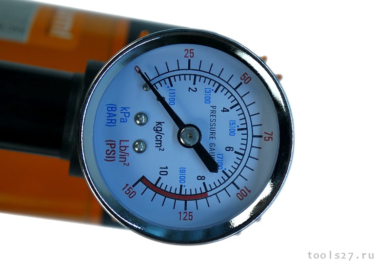 Корпус изделия оснащен удобным штуцером, который позволяет выполнять быстрое подключение насадки-пистолета на гибком шланге для подкачки шин.