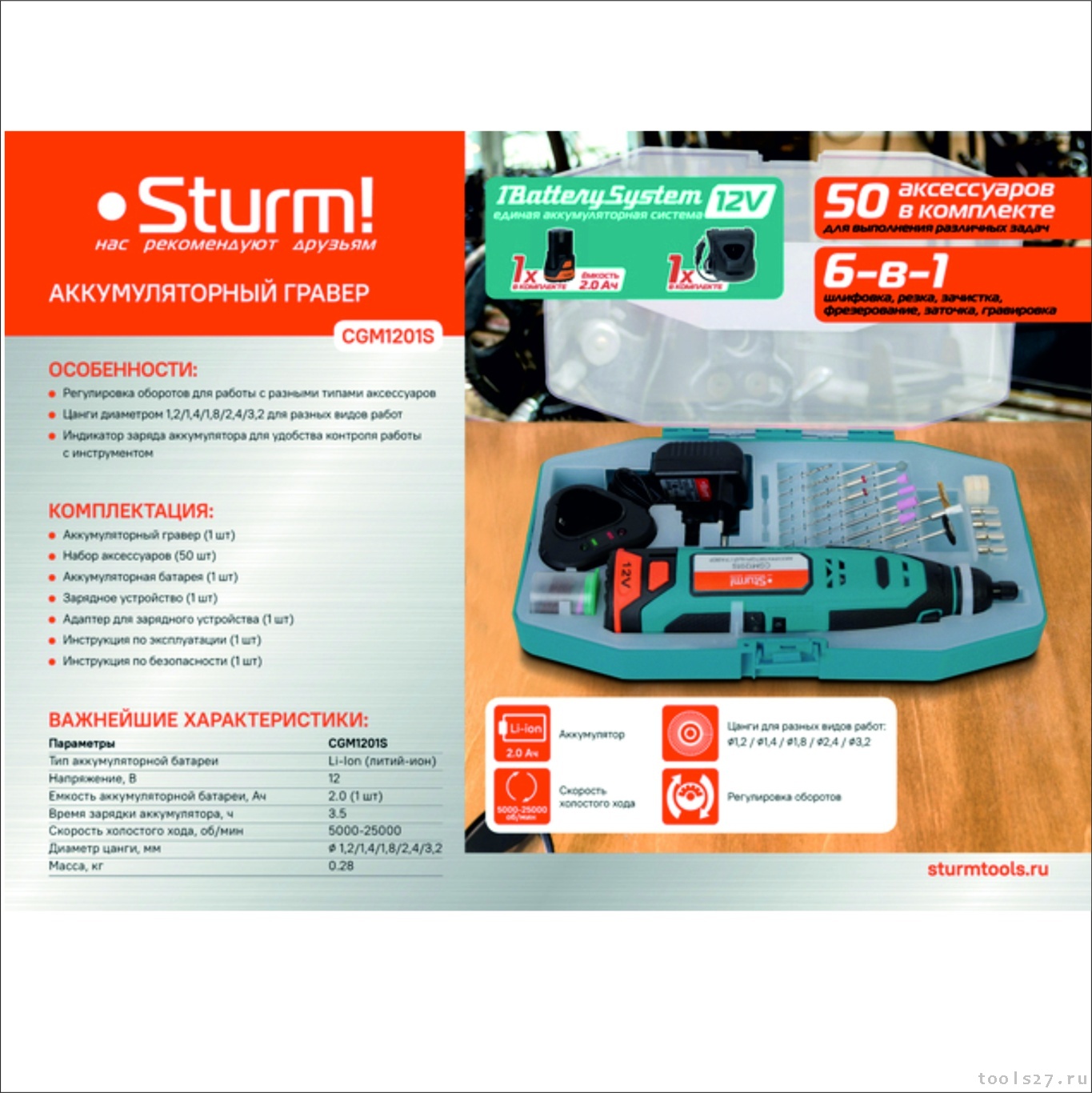 Гравер аккумуляторный Sturm!1BatterySystem12V CGM1201S (1544)