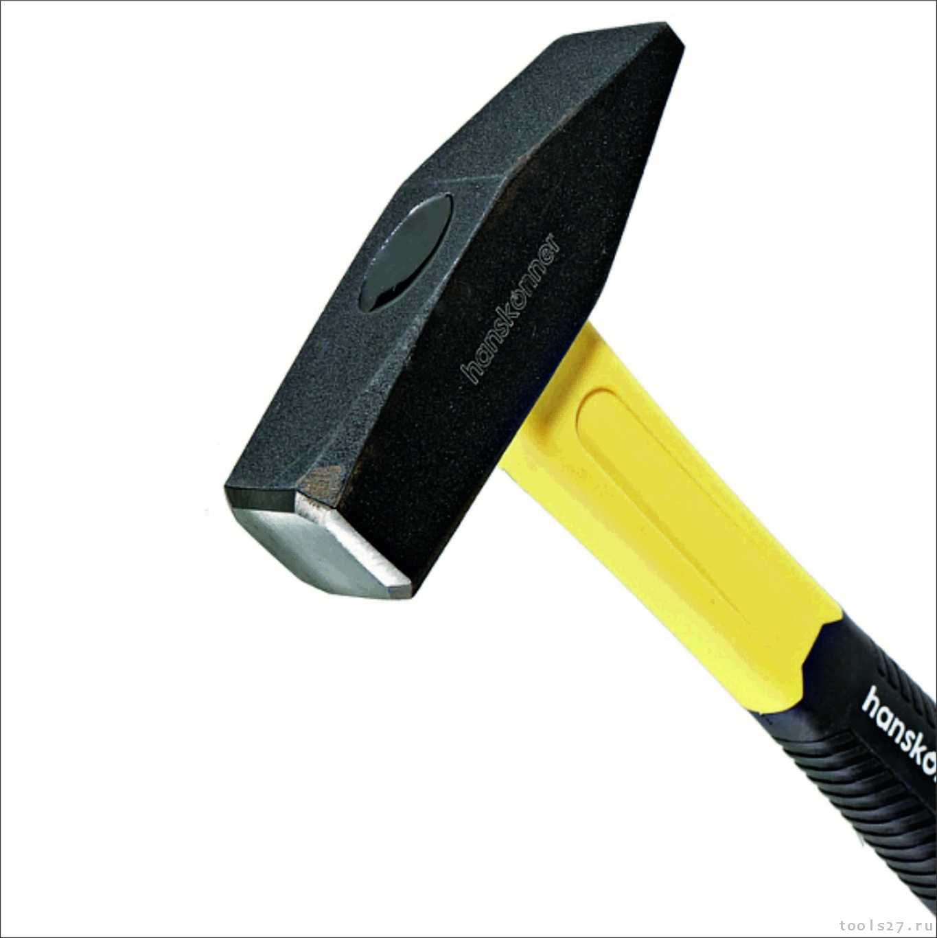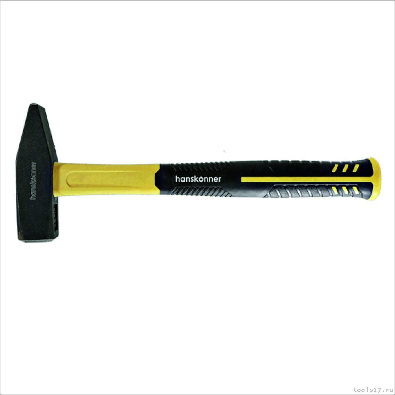 Молоток слесарный, кованый боек, 800 г, фибергласовая рукоятка, Hanskonner. Обрезиненная фибергласовая рукоятка амортизирует удар и обеспечивает полный контроль инструмента. Кованый боек с закалкой до 58 HRC обеспечивает долговечность инструмента и защиту от деформации при высоких ударных нагрузках.