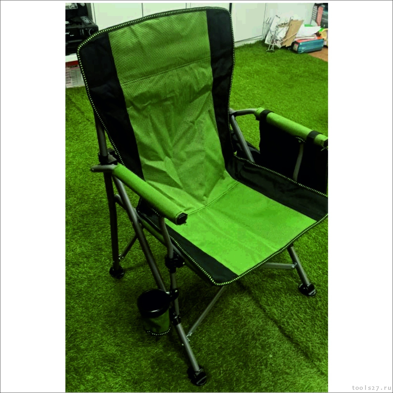 Удобное широкое кресло предназначено для комфортного отдыха на даче, природе, рыбалке.