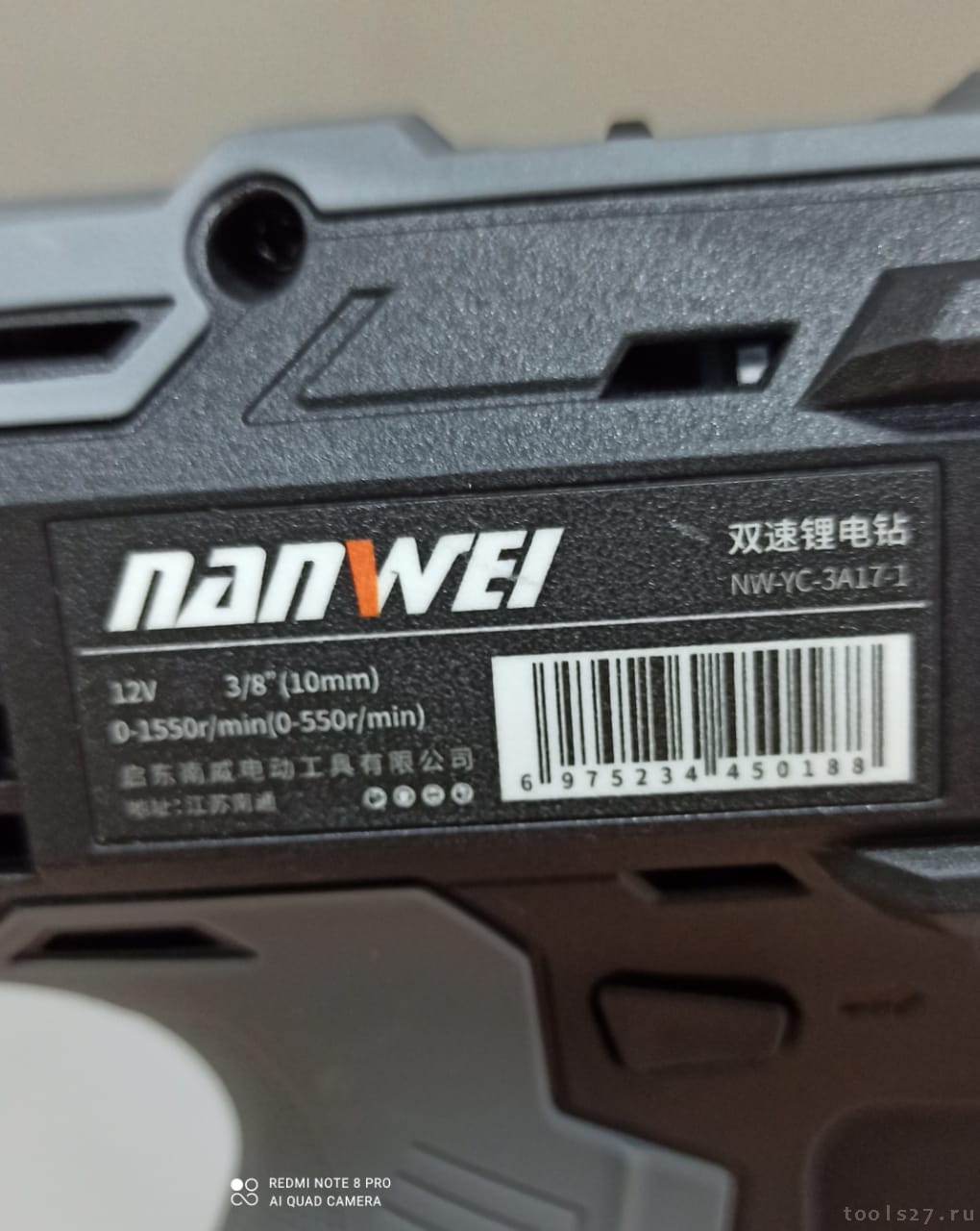 Шуруповерт аккумуляторный Nanwei NV-YC-3A17-1 щеточный 12V