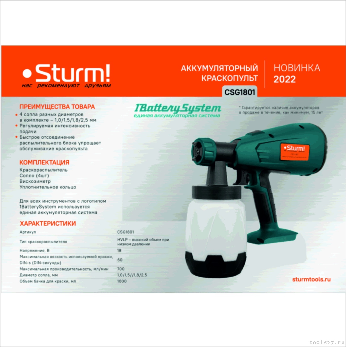 Краскопульт аккумуляторный Sturm!1BatterySystem CSG1801 (1588)
