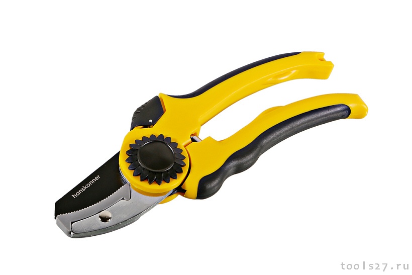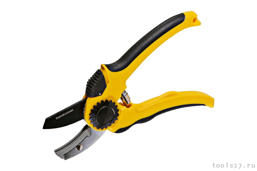 Секатор ручной, 210 мм, верхнее лезвие с тефлоновым покрытием, нижнее наковальня, Hanskonner HK3012-07-25 (1608)