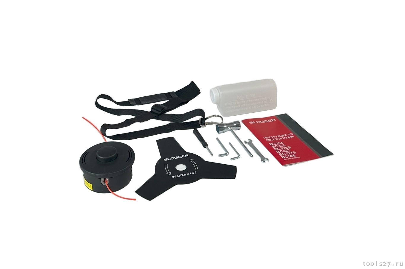 Комплектация: плечевой ремень; 3х-лучвой нож; головка с леской М10 1:25;
