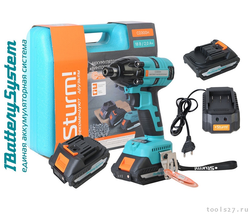 1BatterySystem — универсальная аккумуляторная система. Подходит ко всей линейке аккумуляторного инструмента Sturm.