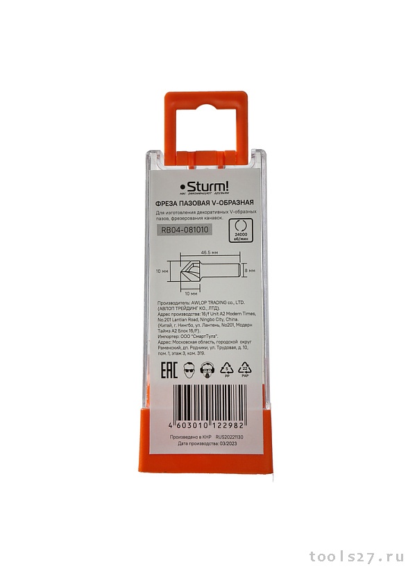 Фреза пазовая V-образная DxHxL 10x10x46,5 мм, хв.8 Sturm! RB04-081010 (1663)