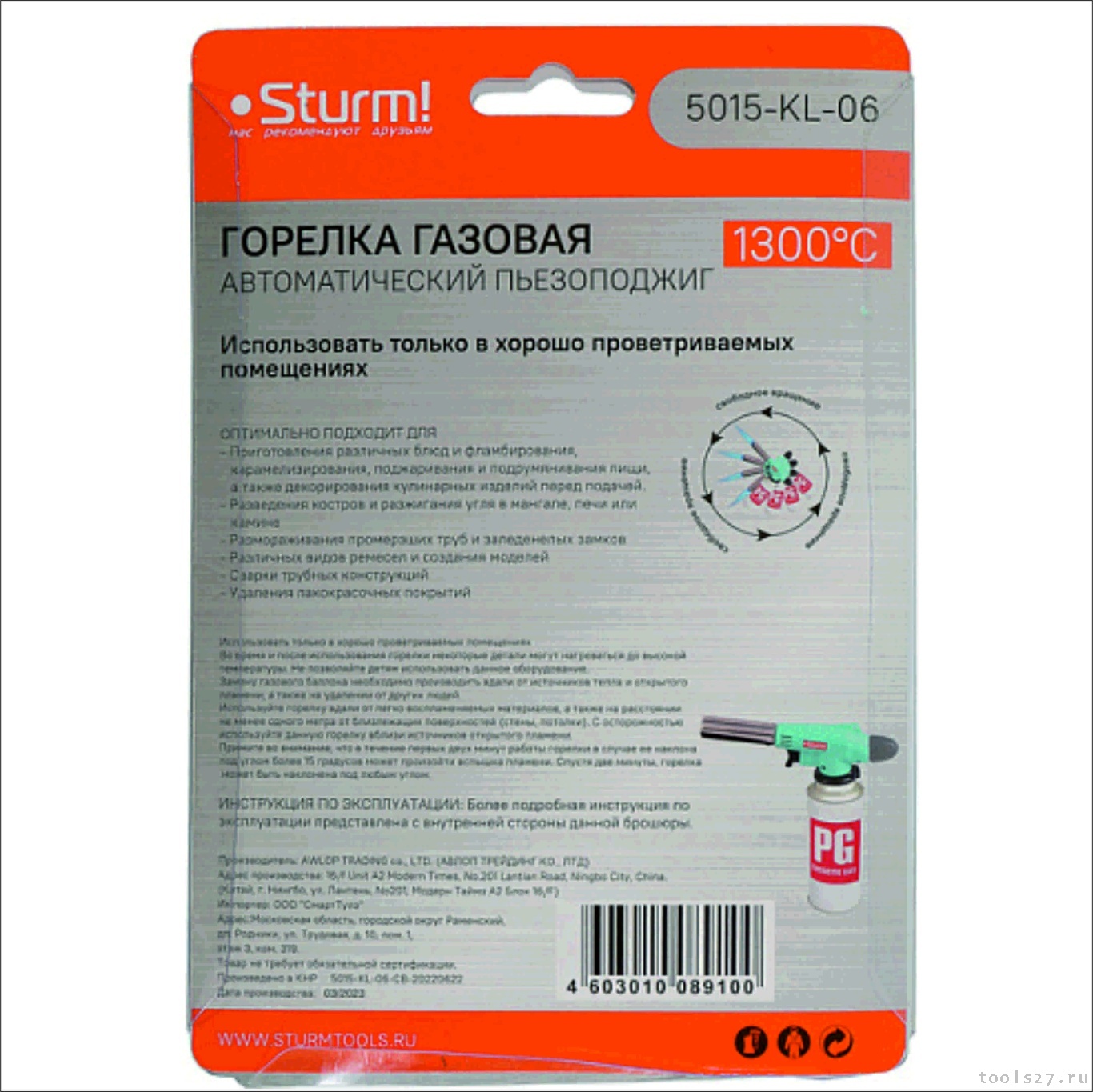 Насадка-горелка, пьезоподжиг курок, керамика в сопле, Sturm! 5015-KL-06 (1676)