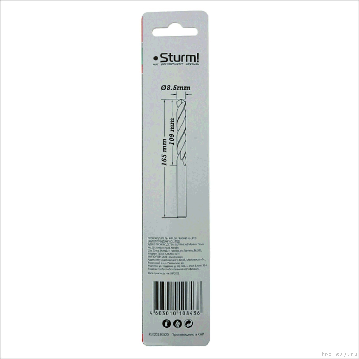 Сверло по металлу Sturm! 1055-085-165L (1689)