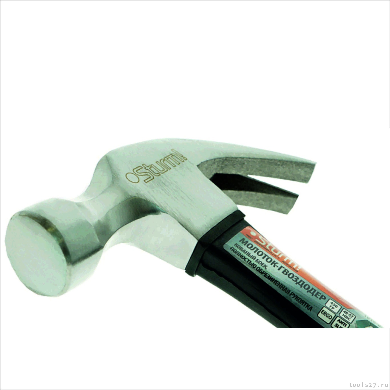 Молоток-гвоздодер, 450 г, кованый боек, обрезиненная рукоятка Sturm! 1010-62-FR0450 (1704)