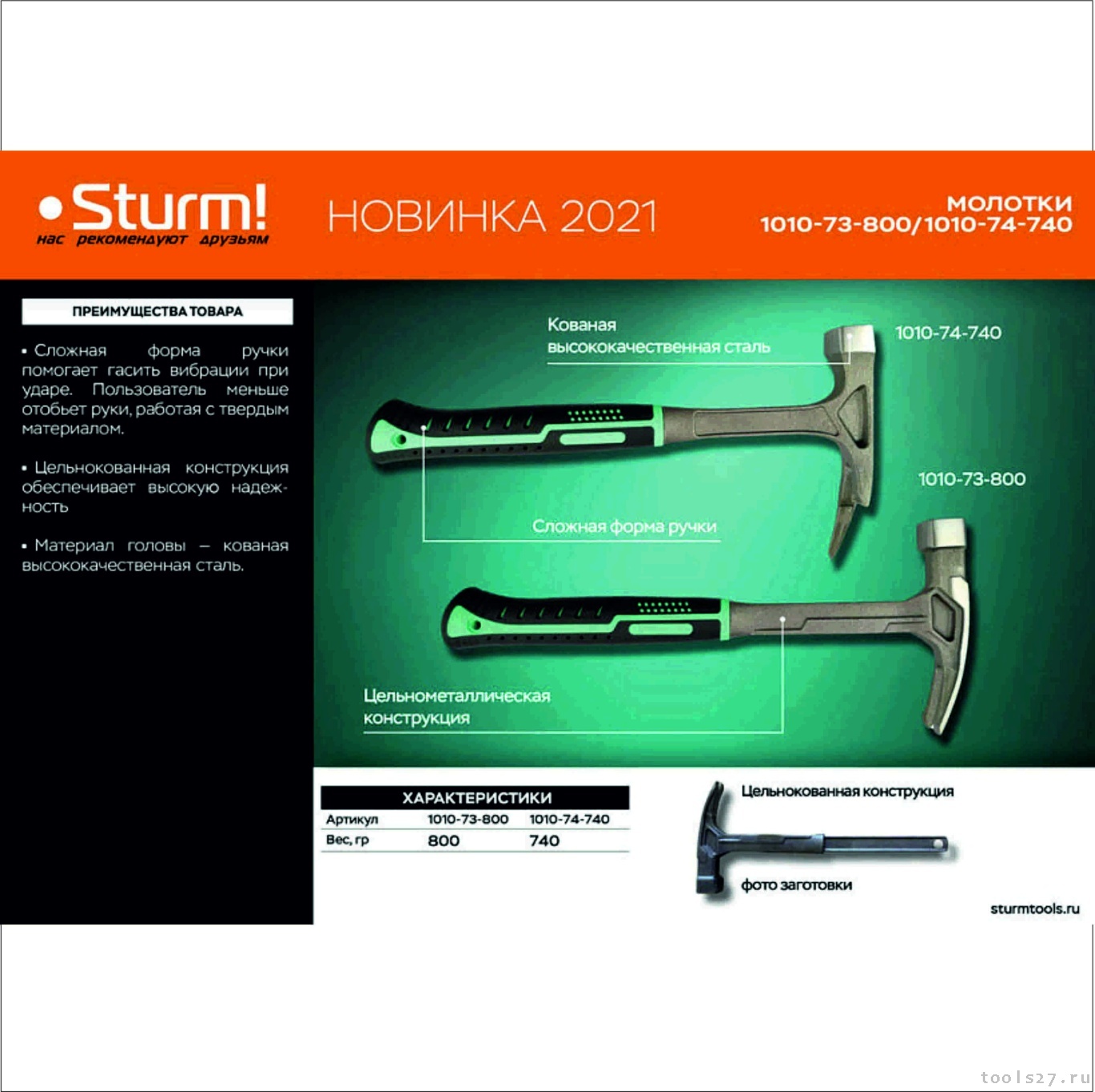 1010-74-740 Молоток кровельщика ЦЕЛЬНОКОВАНЫЙ, пескостр. обработка 740гр Sturm!