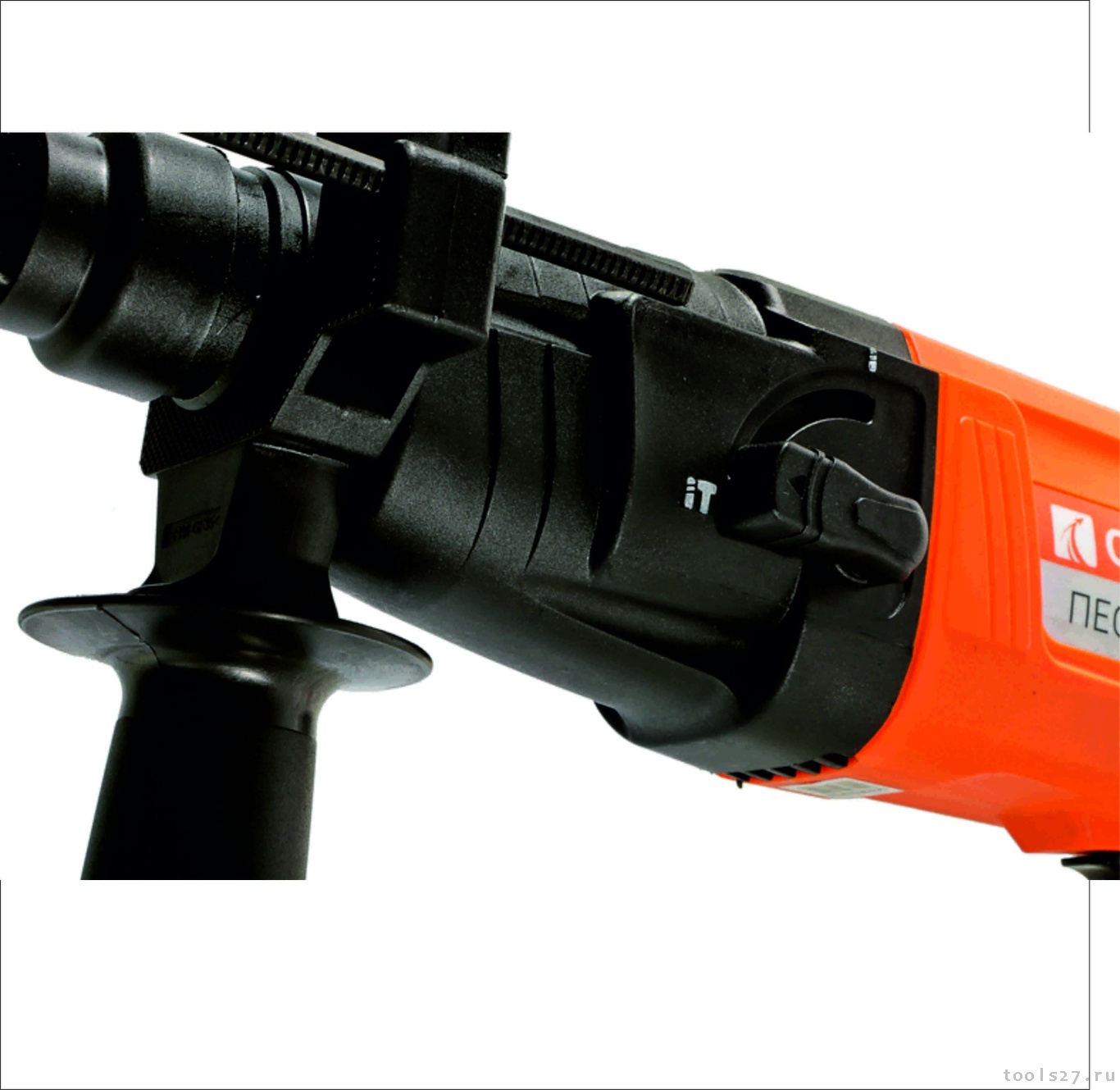 Регулировка оборотов позволяет использовать перфоратор в качестве миксера при использовании специальных насадок Предохранительная муфта защищает инструмент и оператора при заклинивании бура Патрон SDS-plus позволяет производить быструю смену оснастки одним движением ускоряя рабочий процесс Боковая рукоятка с креплением для ограничителя глубины сверления быстро регулируется в наиболее удобное для оператора положение с помощью одной руки Фиксация клавиши пуск для удобства продолжительной работы