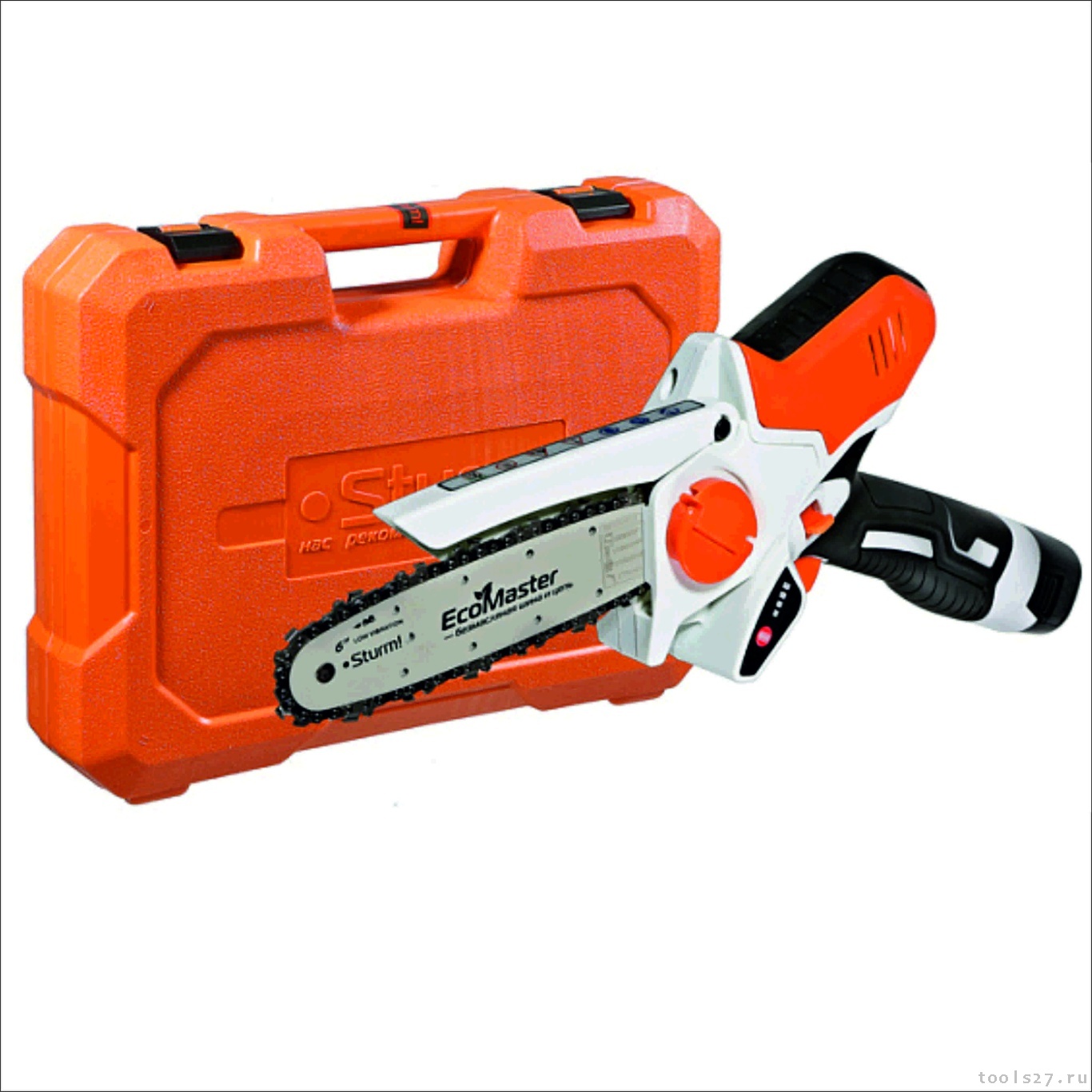 Аккумуляторная цепная пила Sturm! CSC18061 прекрасно справится с обрезкой веток деревьев и простыми столярными работами.