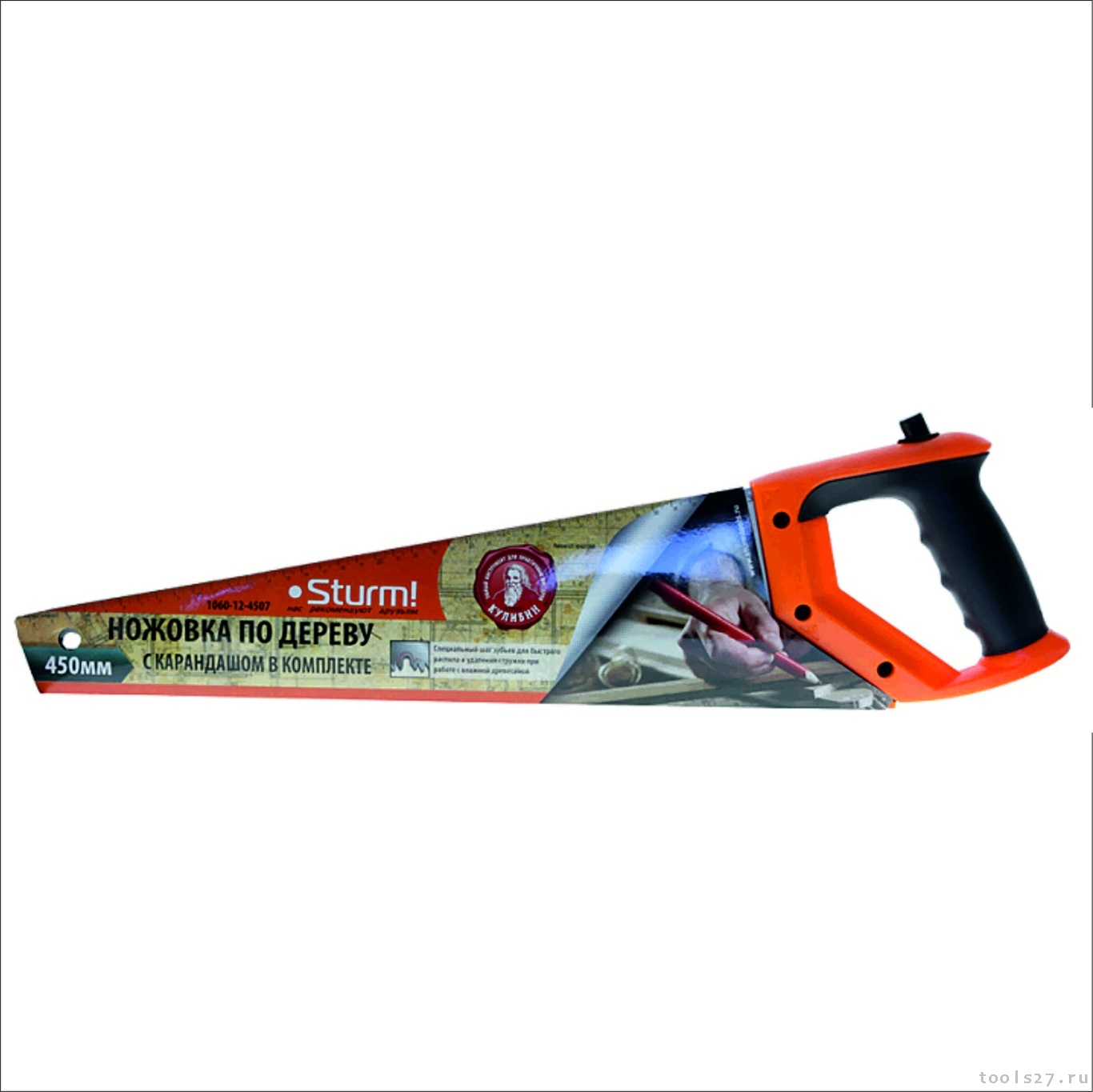 Ножовка для мокр. дерева, с карандашом,450мм,7-8TPI,3D, серия Кулибин, Sturm! (1760)