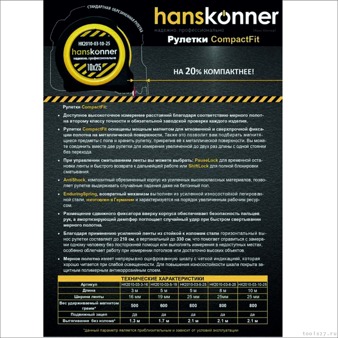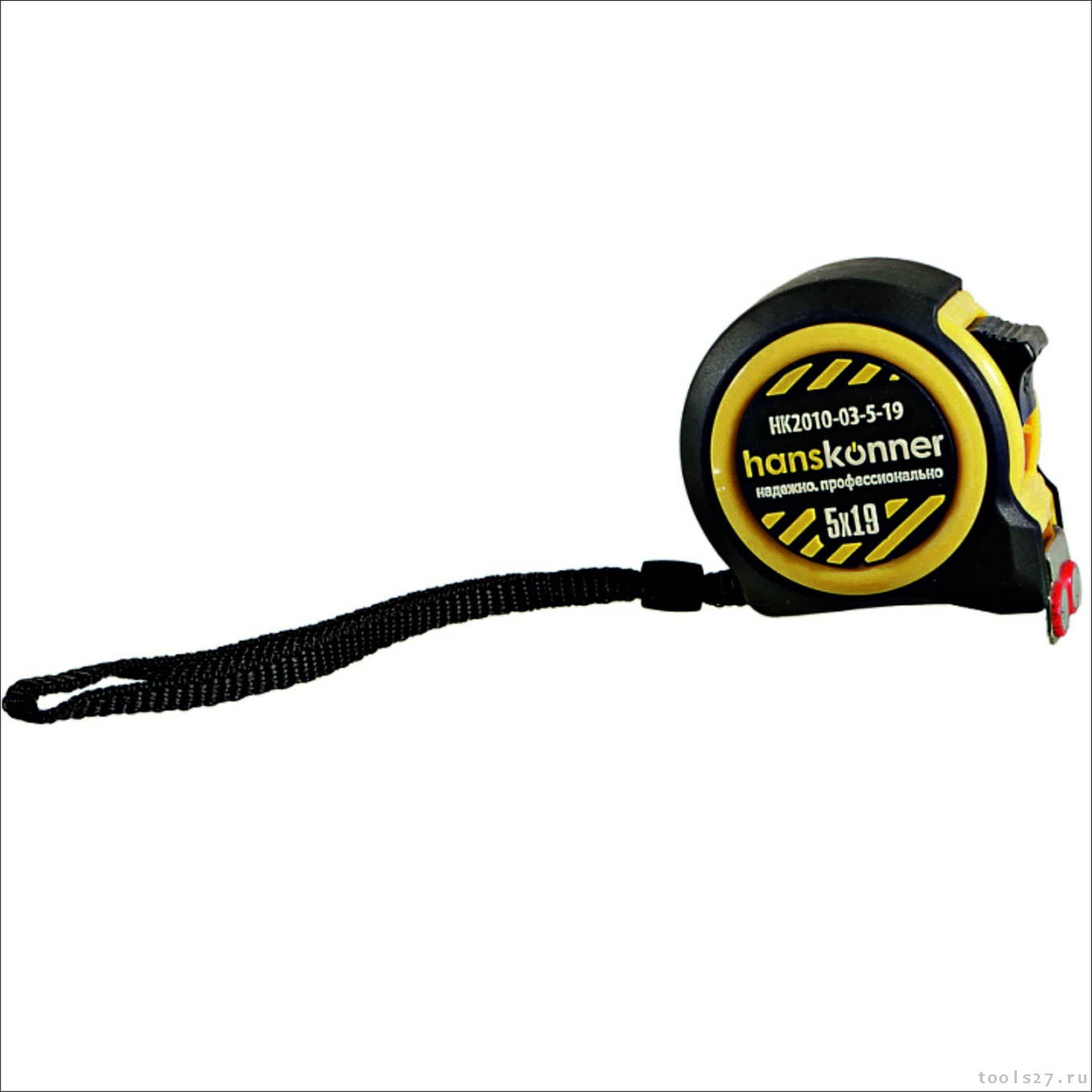 Рулетка 5x19мм, 2 стопа, компактный корпус, мощный магнит, Hanskonner HK2010-03-5-19 (1762)
