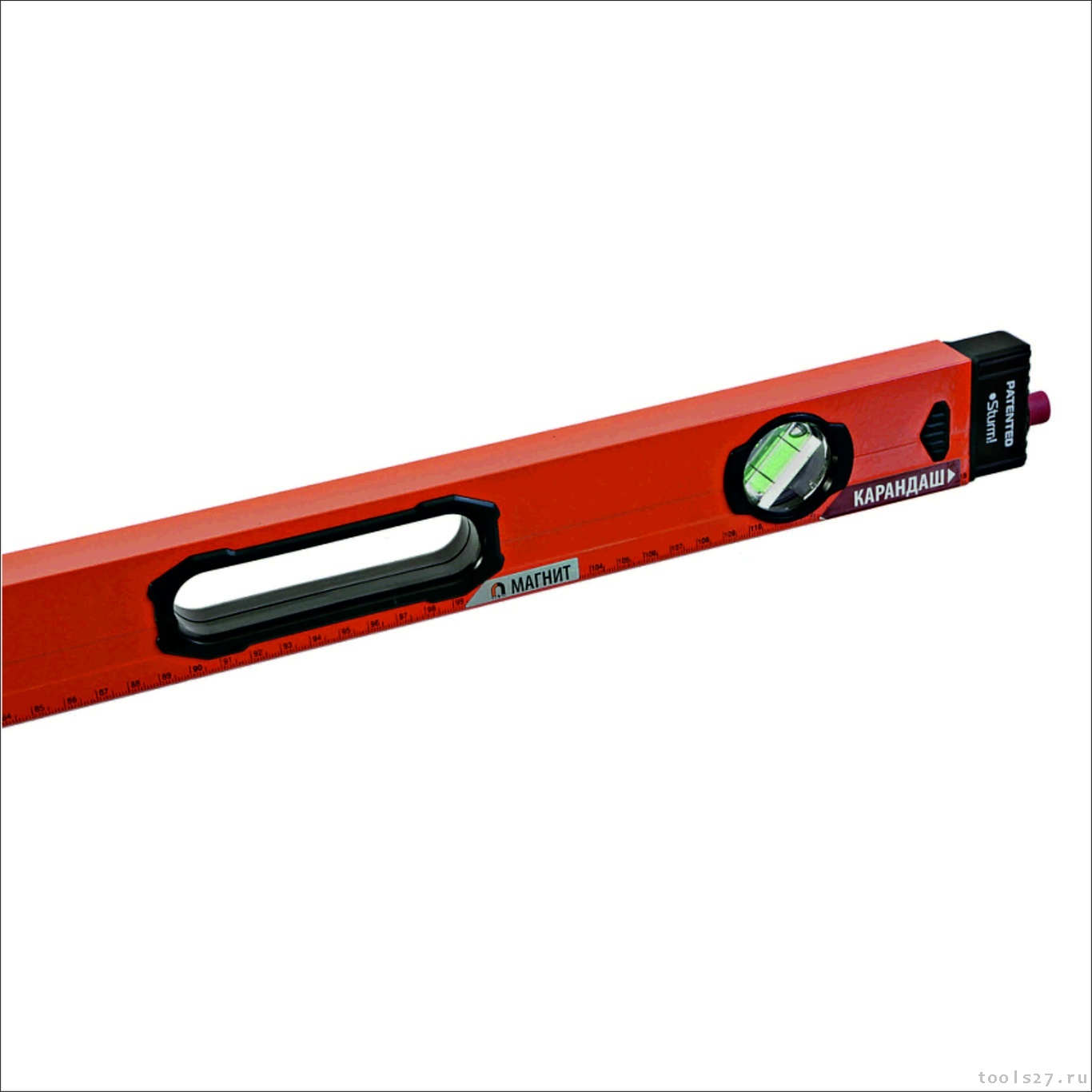 Переход от замера к разметке и обратно стал максимально быстрым, что в разы экономит время в процессе работы. Крепление осуществляется специально разработанной резиновой втулкой, которая надёжно удерживает карандаш, а также позволяет его быстро извлечь и вернуть на место, исключая возможную потерю. 3 высокоточные колбы из ударопрочного плексигласа, литой цельнометаллический профиль, стойкость к ударам, фрезерованная поверхность для лучшего сцепления с поверхностью и увеличения точности измерения, магнит, измерительная шкала, ручки для переноса.