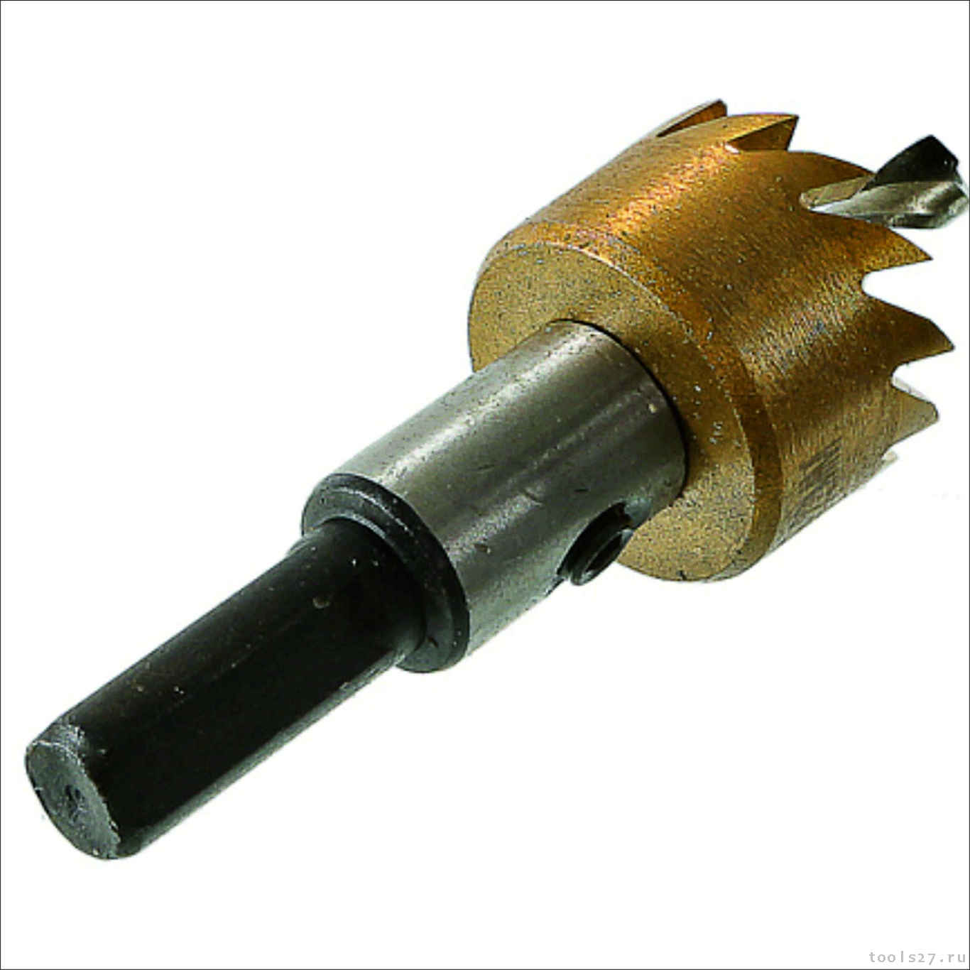 Коронка биметаллическая с зубьями из быстрорежущей стали Р6М5. Обладает высоким ресурсом и позволяет сделать ровный и точный рез. Предназначена для резки тонколистового металла (сталь, нержавеющая сталь).