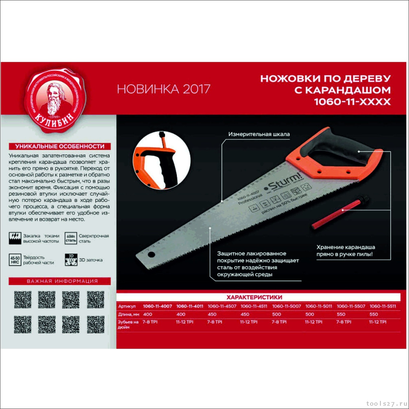 Ножовка по дереву Sturm! 1060-11-5507 со встроенным карандашом 1060-11-5507 (1774)