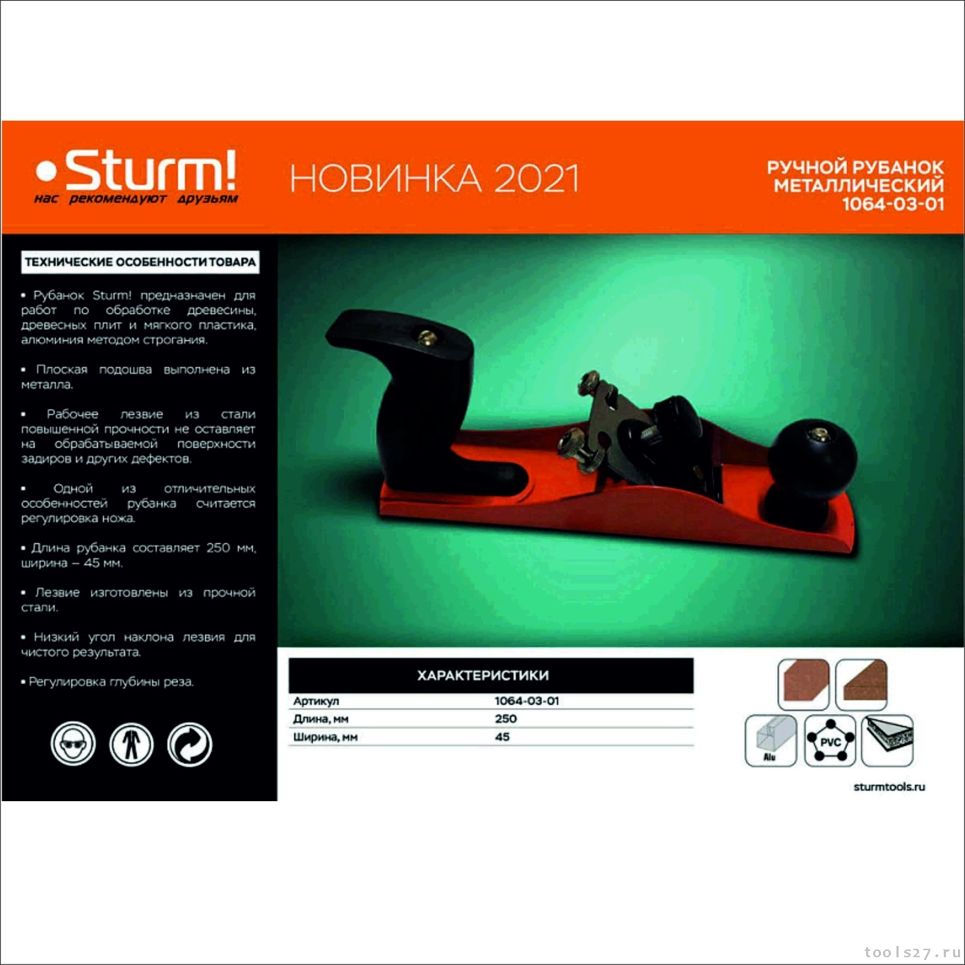 Рубанок металлический 250 мм Sturm!: 1064-03-01 (1776)