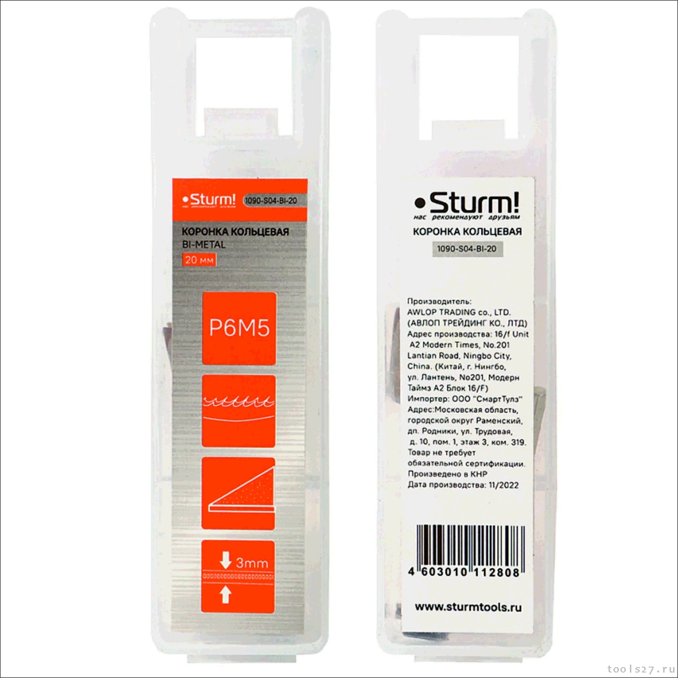 Коронка биметаллическая, 16 мм, по тонколистовому металлу, центрирующее сверло, Sturm!1090-S04-BI-16 (1795)
