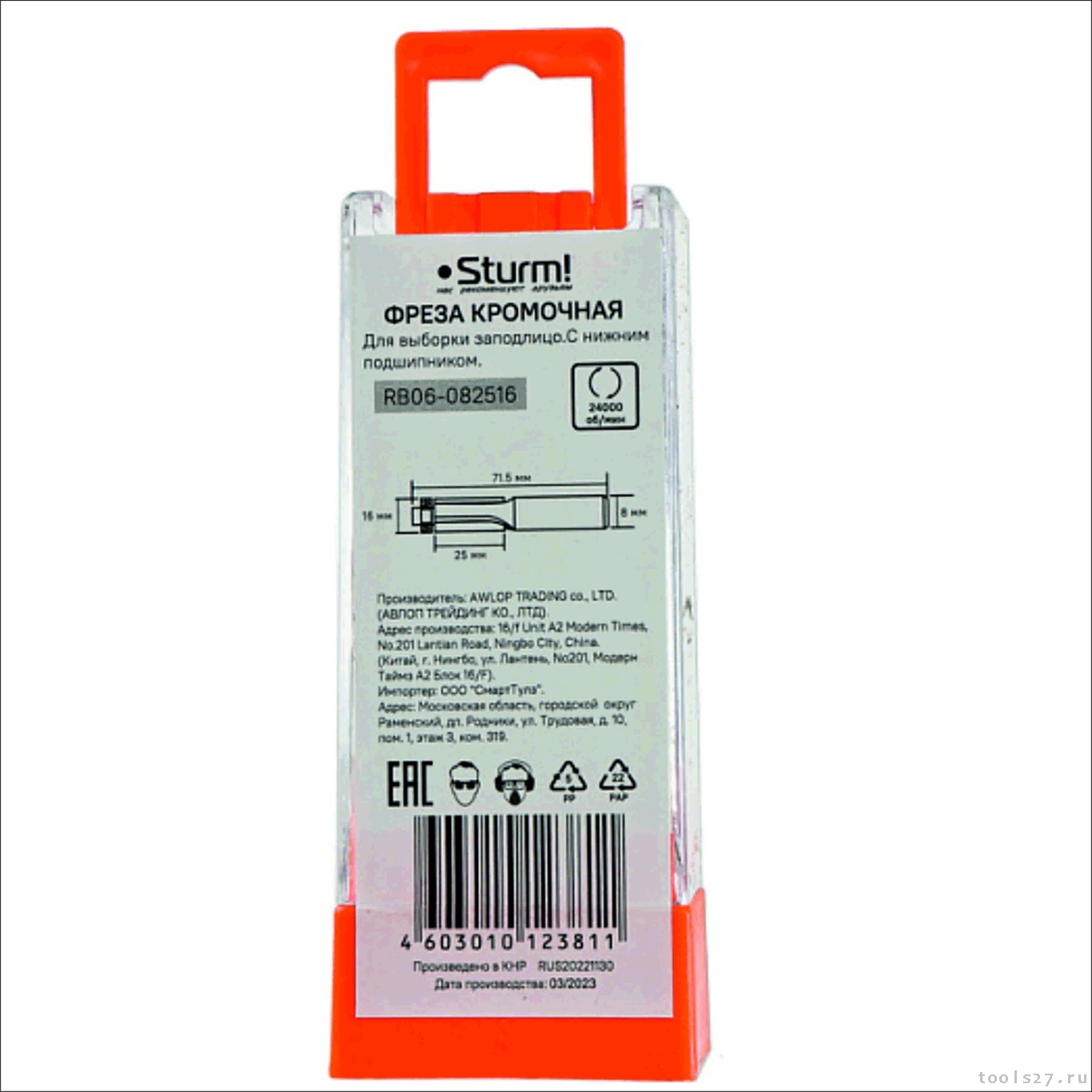 Фреза кромочная с нижним подшипником dxhxl 16x25x71,5 мм,хв.8 Sturm! RB06-082516 (1800)