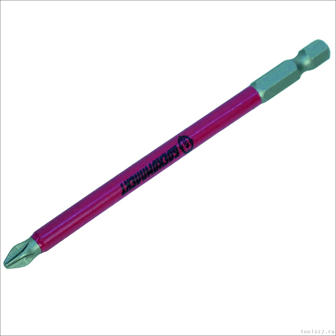 Наконечник намагничен и имеет насечки, которые улучшают передачу усилия от шуруповерта/отвертки к саморезу и снижают возможность выскальзывания биты из головки самореза