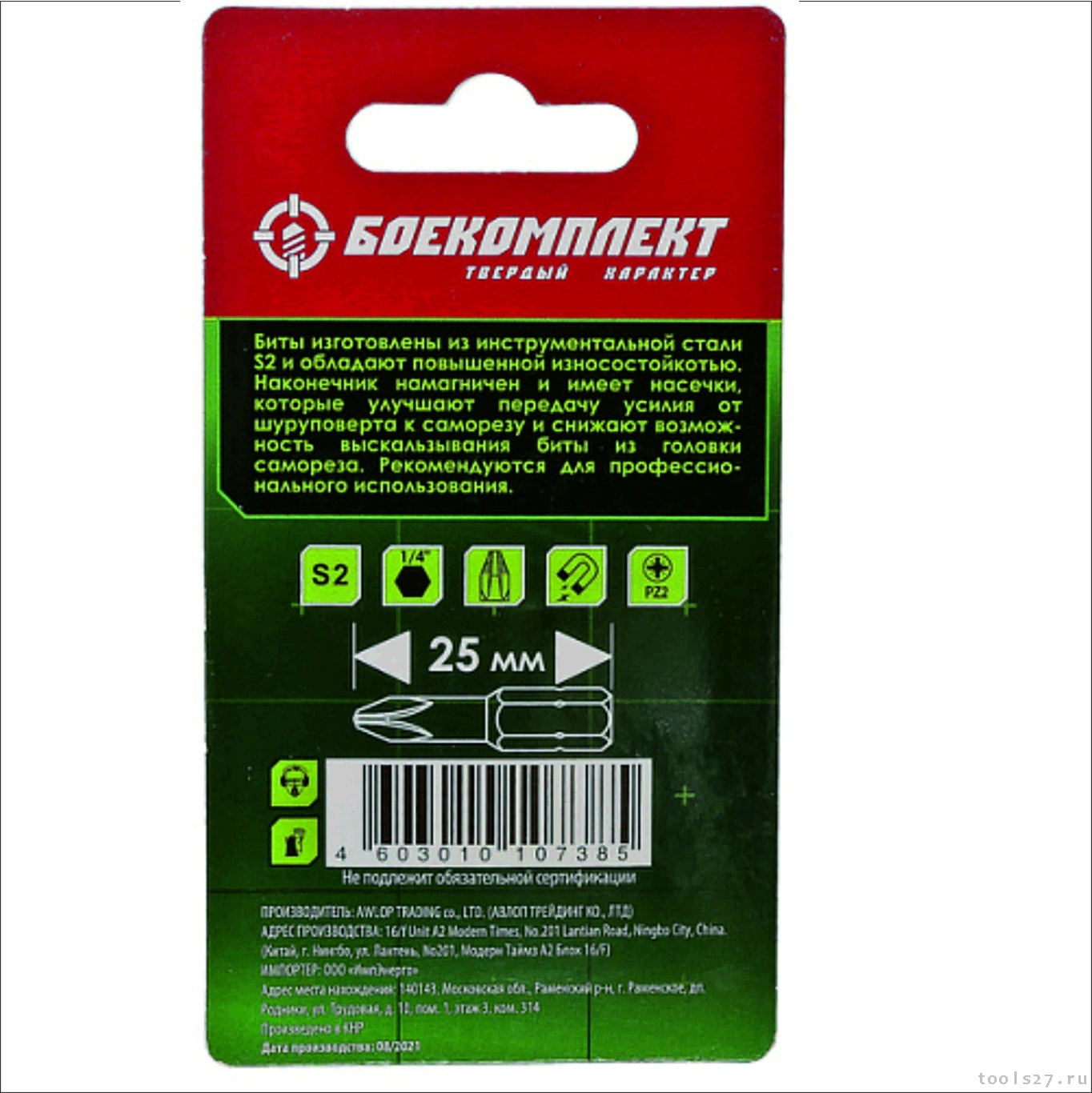 Биты PZ2x25мм, сталь S2, 2шт, БОЕКОМПЛЕКТ BPZ2-25-2 (1820)