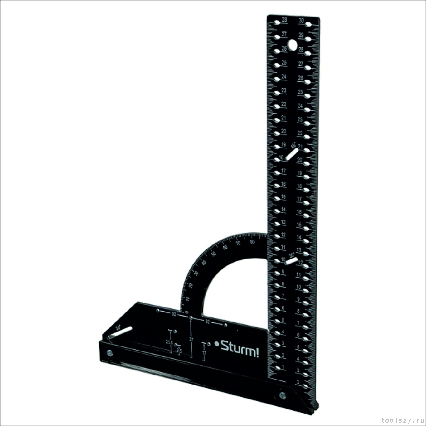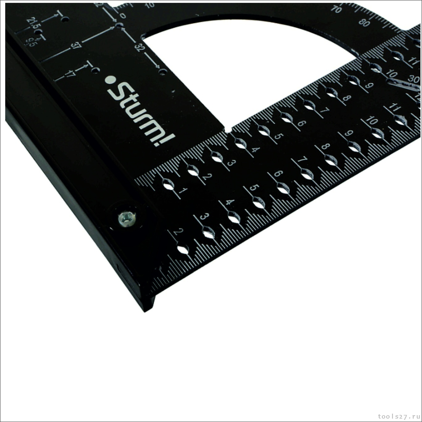 Универсальный угольник для измерения, разметки и черчения. Удобен для разметки радиусов, кругов, мебельных шарниров.