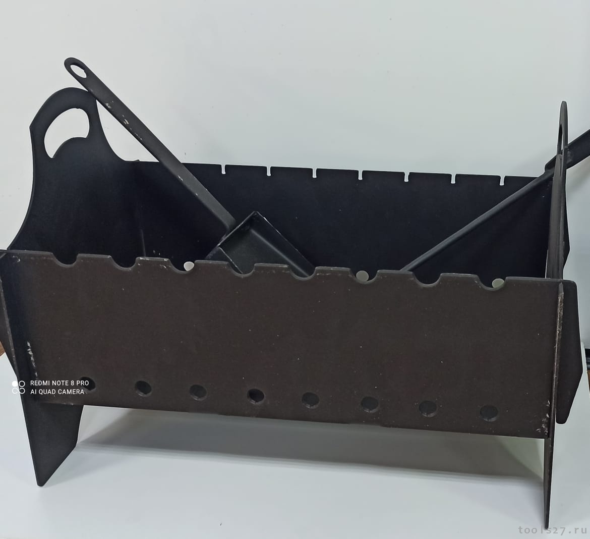 Прочный, сборно -разборный стальной мангал .Состоит из 5 частей, легок в сборе и разборе. Простая сборка, толщина металла 3мм ,не деформируется при долгой эксплуатации . Подходит для выезда на природу ,пикник , дачу ,озеро , для жарки шашлыка. На мангале помешается 8 шампуров . Идеальная глубина жарки для углей, равномерное распределение жара по мангалу. Мангал покрыт жаростойкой черной матовой краской до 900 градусов.