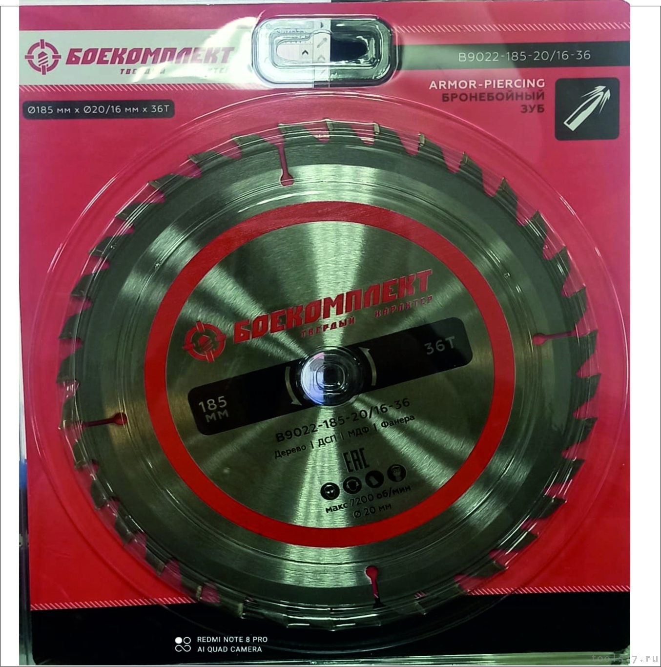 Диск пильный по дереву 185x20/16мм, 36 зубьев, БОЕКОМПЛЕКТ: B9022-185-20/16-36 (1853)