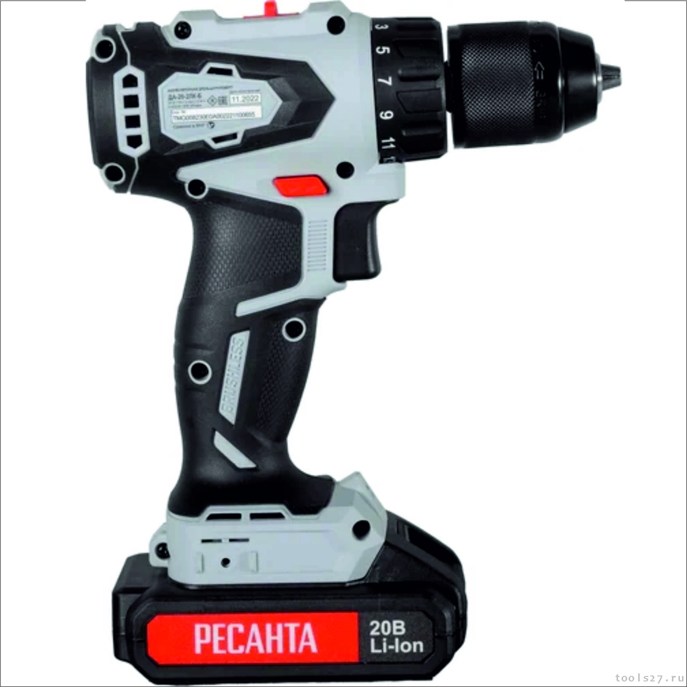 Дрель-шуруповерт аккумуляторная Ресанта ДА-20-2ЛК-Б (2,0 А/ч) (бесщеточный двигатель) 75/14/10 (1908)