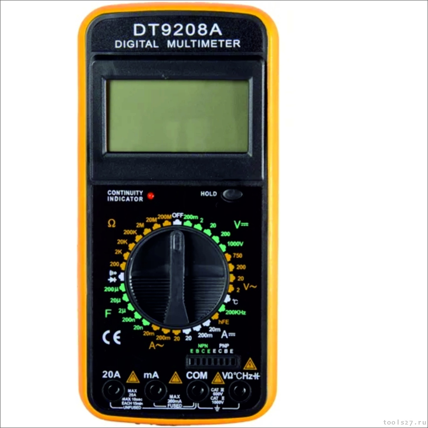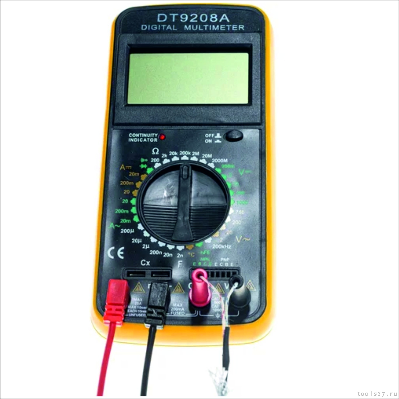 Мультиметр DT9208A предназначен для измерения тока, напряжения, сопротивления, параметров диодов и транзисторов, а также частоты и температуры. Прибор многофункционален, портативен, питается от химических источников, удобен при ремонте электрооборудования автомобиля, лабораторных измерений и т.д.