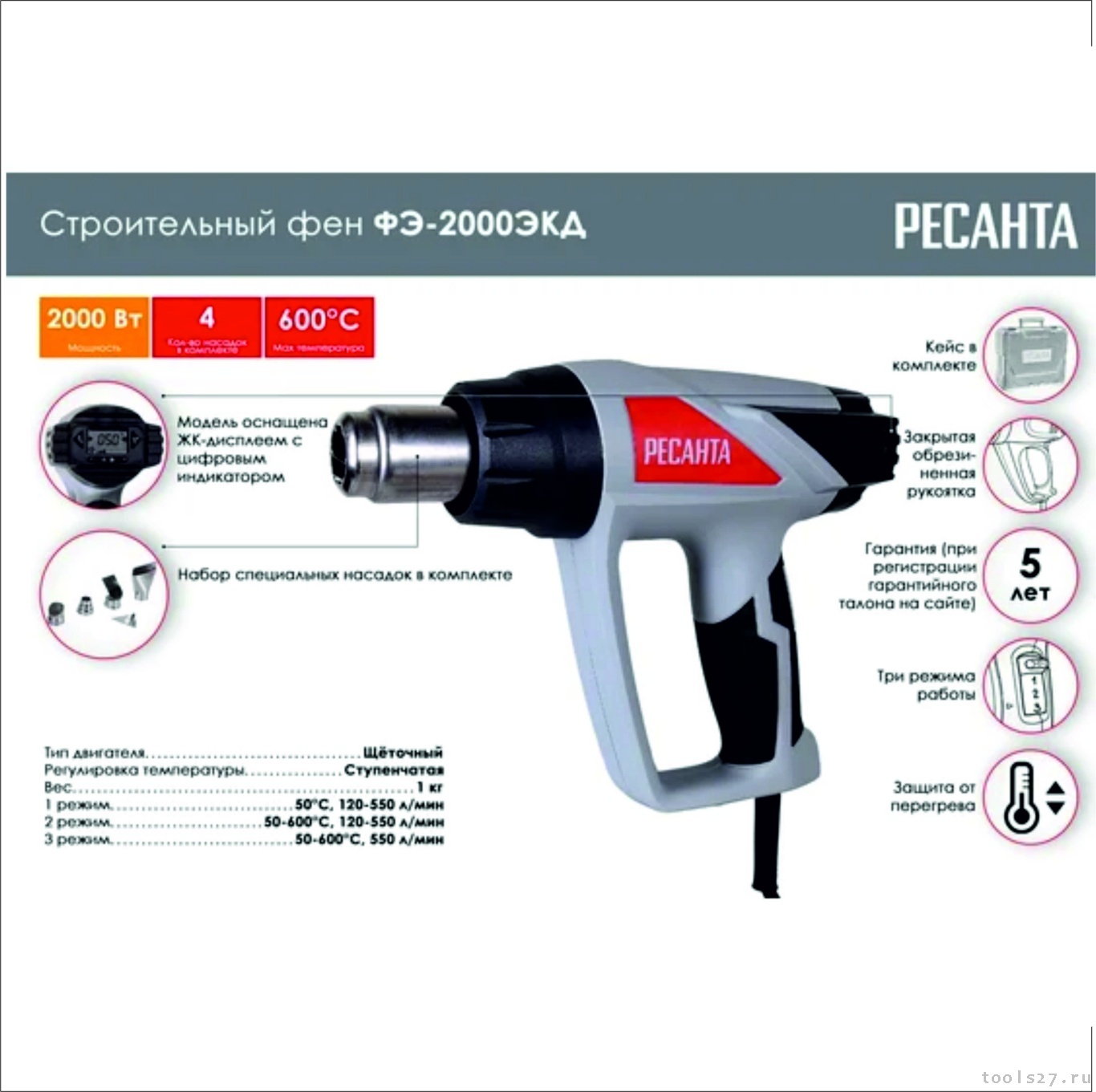 Строительный фен Ресанта ФЭ-2000ЭКД 75/2/3 (1947)