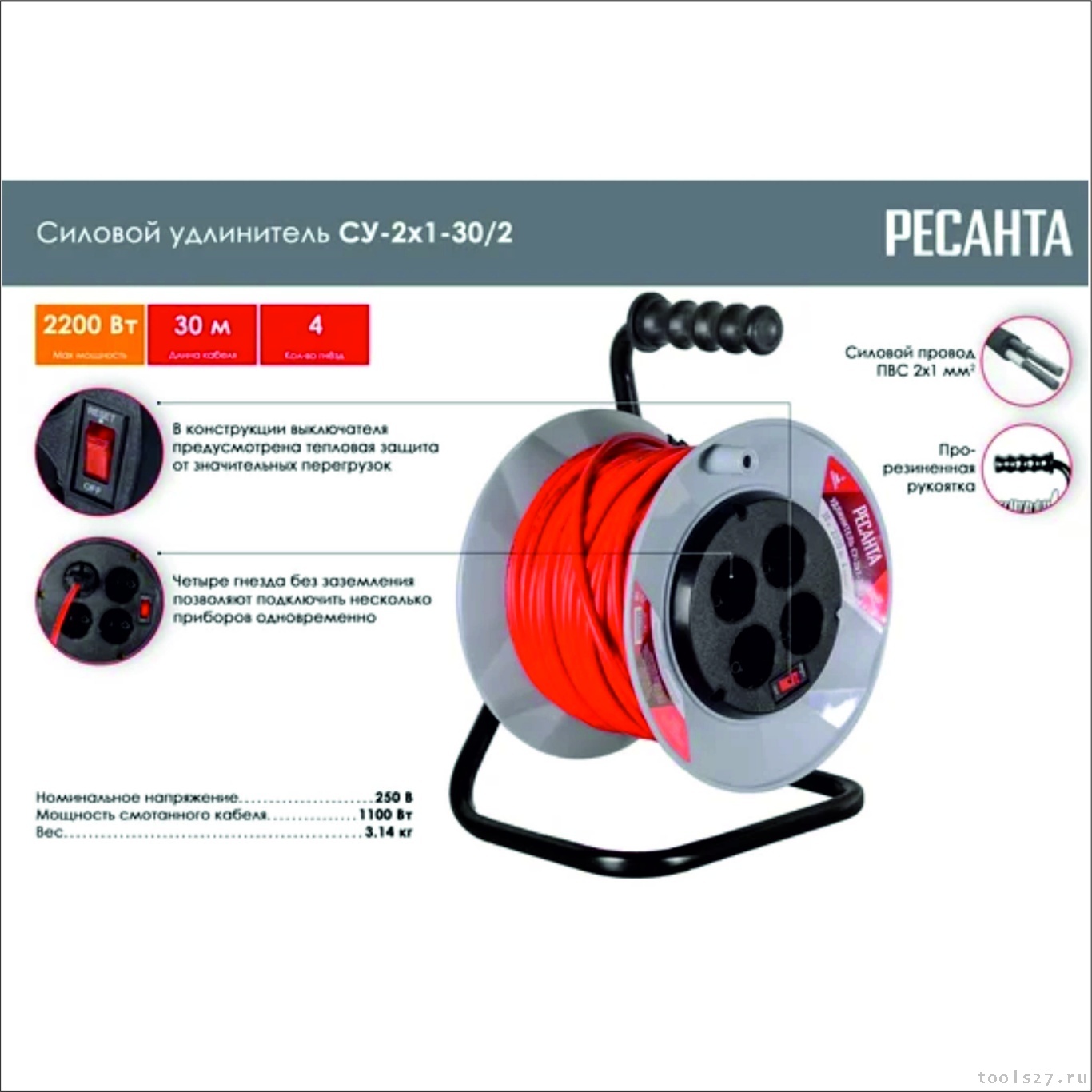 Силовой удлинитель Ресанта СУ-2х1-30/2 пригодится на стройке, в частном доме и на дачном участке. Использовать его удобно за счет катушки, а переносить – благодаря эргономичной ручке и небольшому весу. Удлинитель поможет в использовании электрического триммера, газонокосилки. С его помощью легко подключить различного рода строительный инструмент.