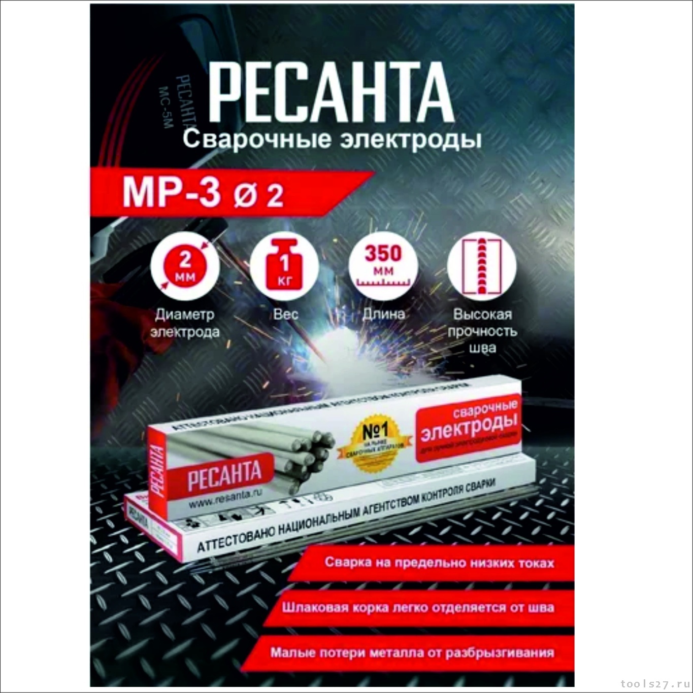 Сварочные электроды Ресанта МР-3 Ф2,0 предназначены для ручной дуговой сварки переменным или постоянным током. Электроды Ресанта типа МР-3 с рутиловым покрытием изготовлены в соответствии с требованиями ГОСТ. Они могут использоваться для сварки большинства металлических конструкций из углеродистой стали с массовой долей углерода до 0,25%, включая сталь, нержавеющую сталь и чугун. Но не подходят для сварки высоколегированных сталей и материалов с толстым слоем окиси.