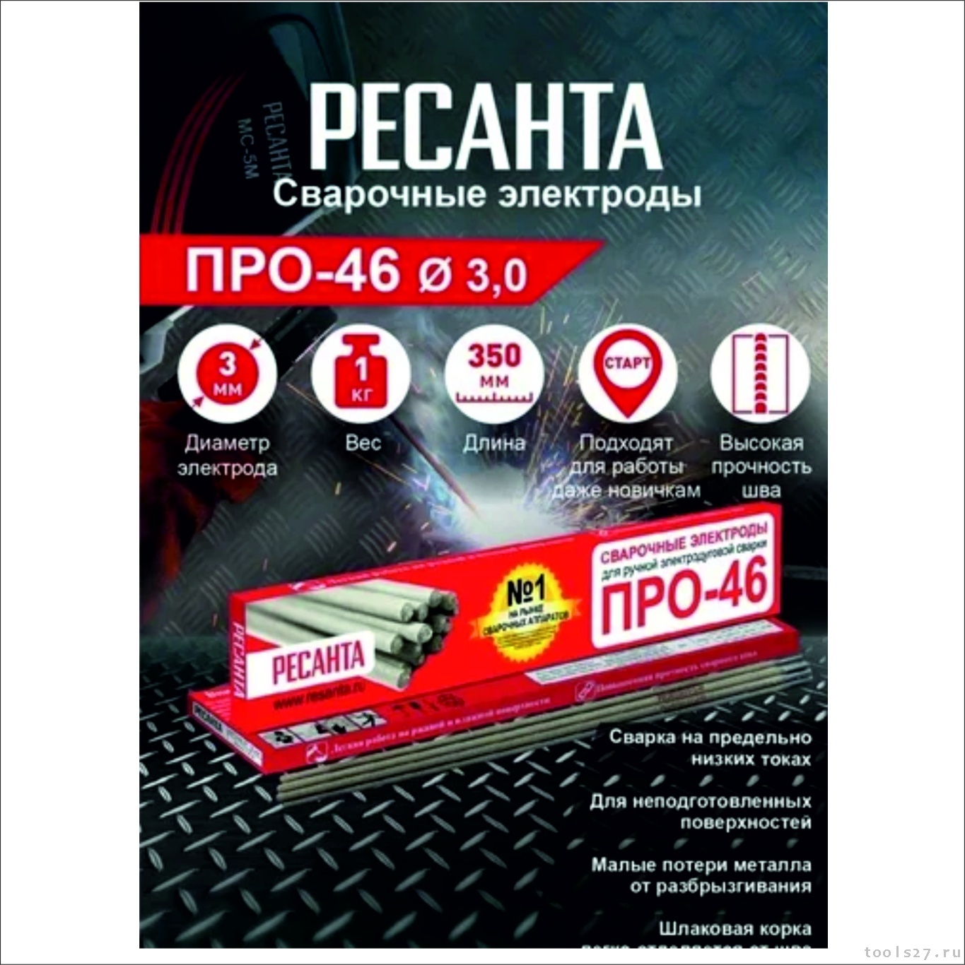 Диаметр электродов Ресанта ПРО-46 Ф3,0 составляет 3 мм, длина - 350 мм. Вес в пачке - 1 кг.