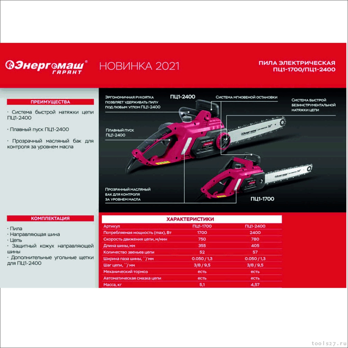 Модель Ресанта ЭП-1512П имеет систему автоматической смазки цепи. Есть смотровое окно, обеспечивающее возможность визуально контролировать уровень масла. Тормоз и быстрая затяжка цепи отсутствуют. Электропила работает от бытовой сети 220В, 50Гц. Уровень шумового давления составляет до 64 дБ.
