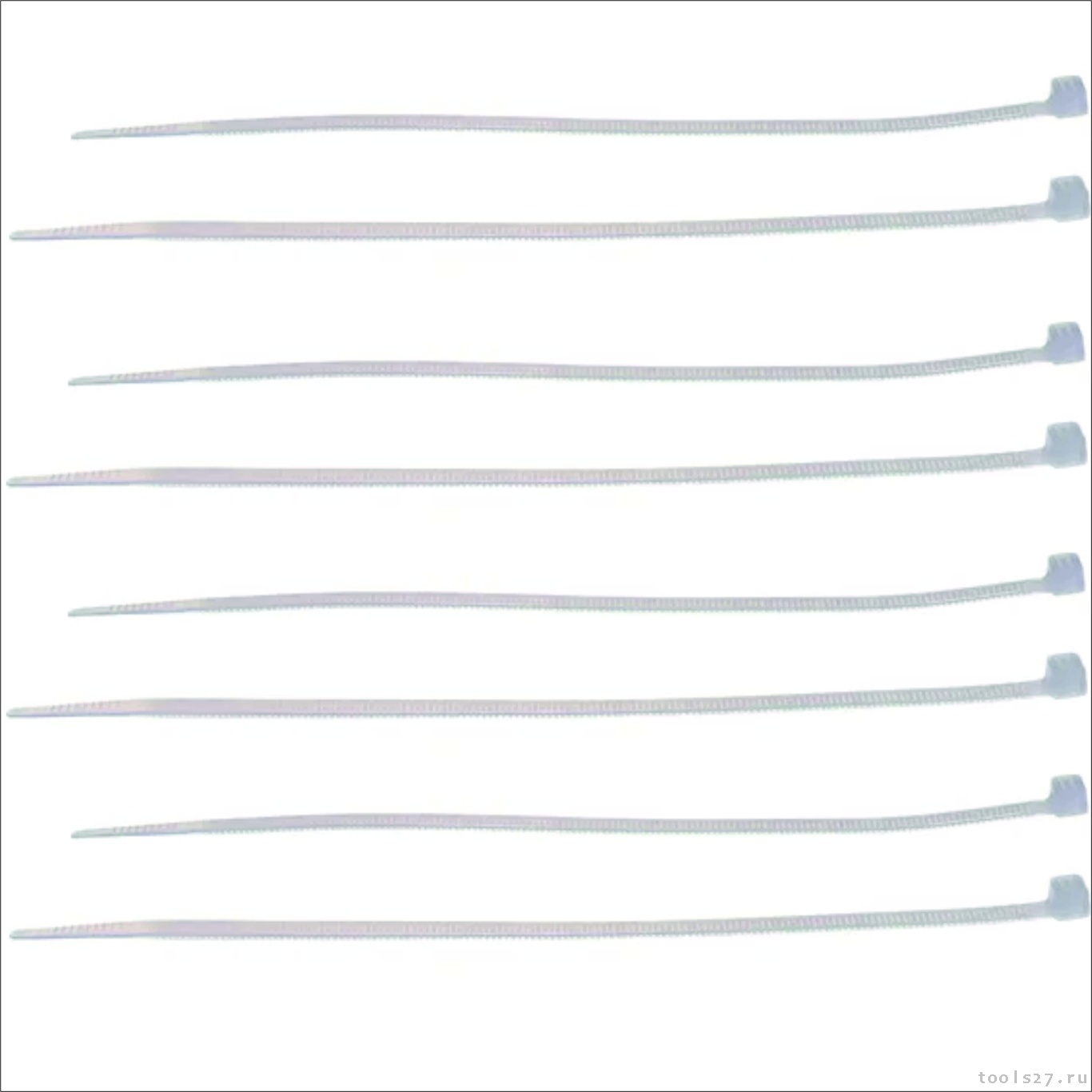 Хомуты нейлоновые Вихрь 4,8*300 Б - крепежные элементы, которые используются для соединения и крепления различных деталей и конструкций, электропроводки, кабелей. Они изготавливаются из белого нейлона. Длина стяжки - 30 см, ширина - 4,8 мм. Усилие на разрыв составляет более 200 кг/см3.