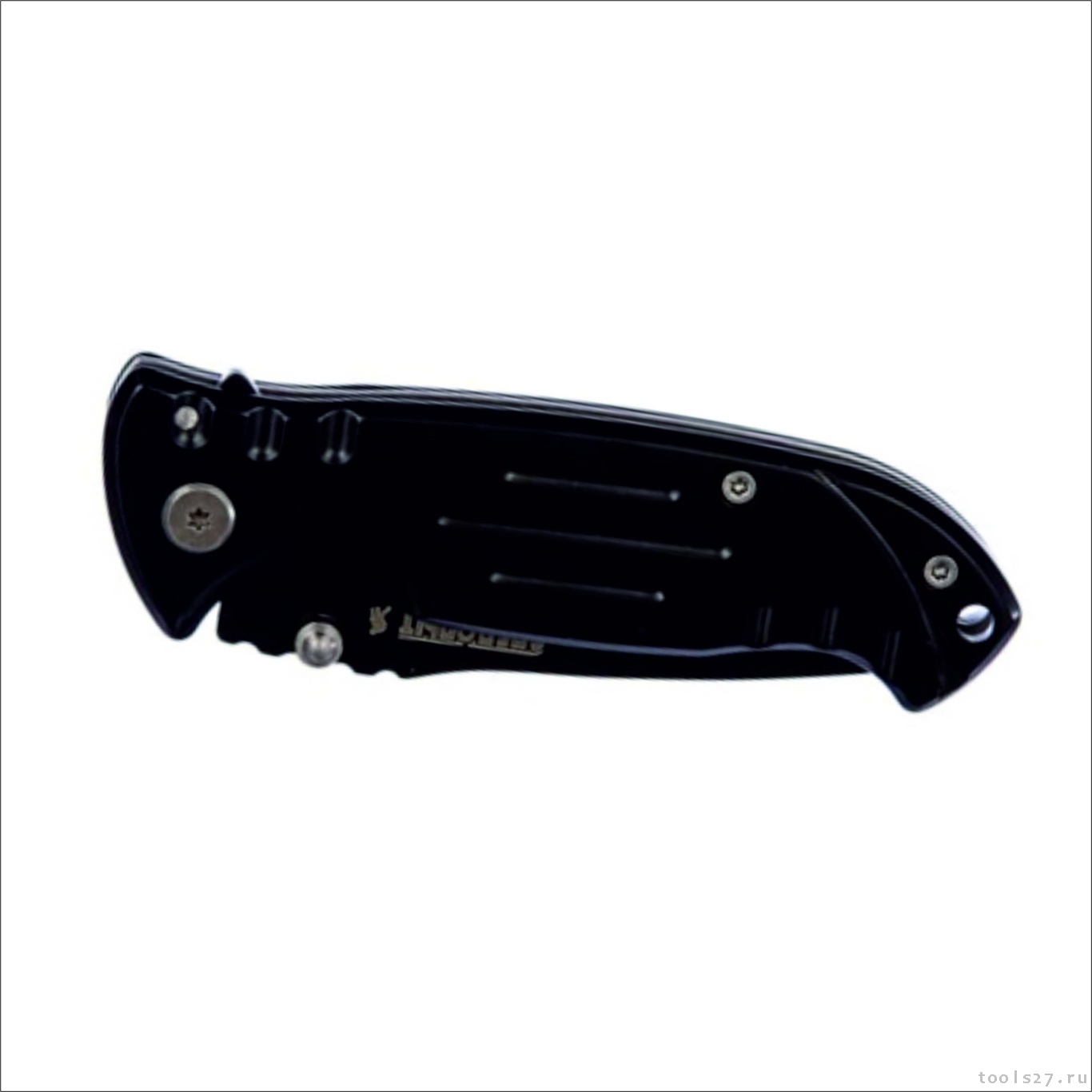 Рукоять металлическая, имеется клипса. Клинок из нержавеющей стали с титановым покрытием.
