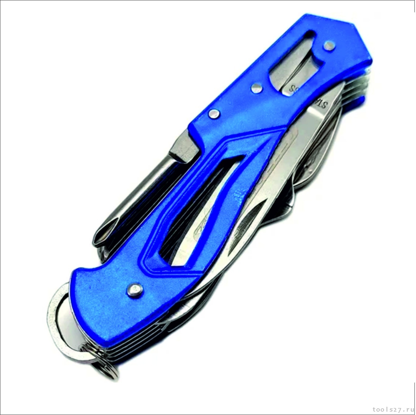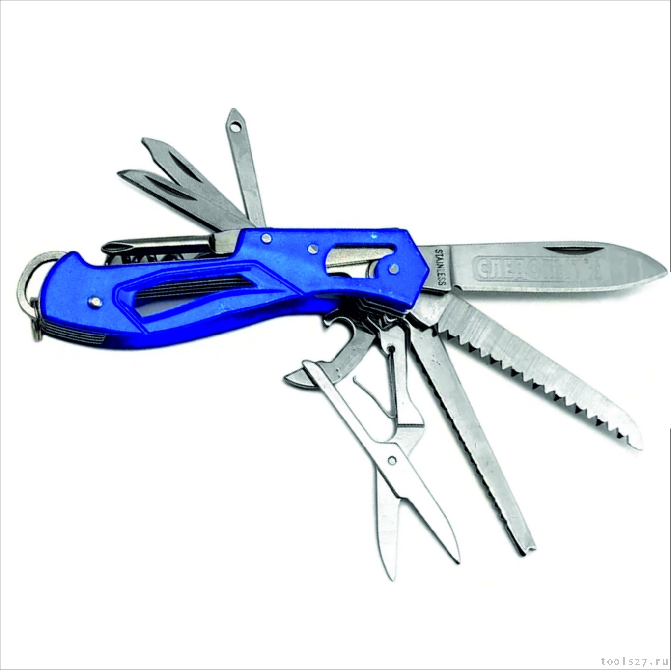 Функции: Нож, Пила, Рыбочистка с экстрактором, Ножницы, Открывашка, Штопор, Шило с отверстием, Пилка, Шило без отверстия, Крестовая отвертка