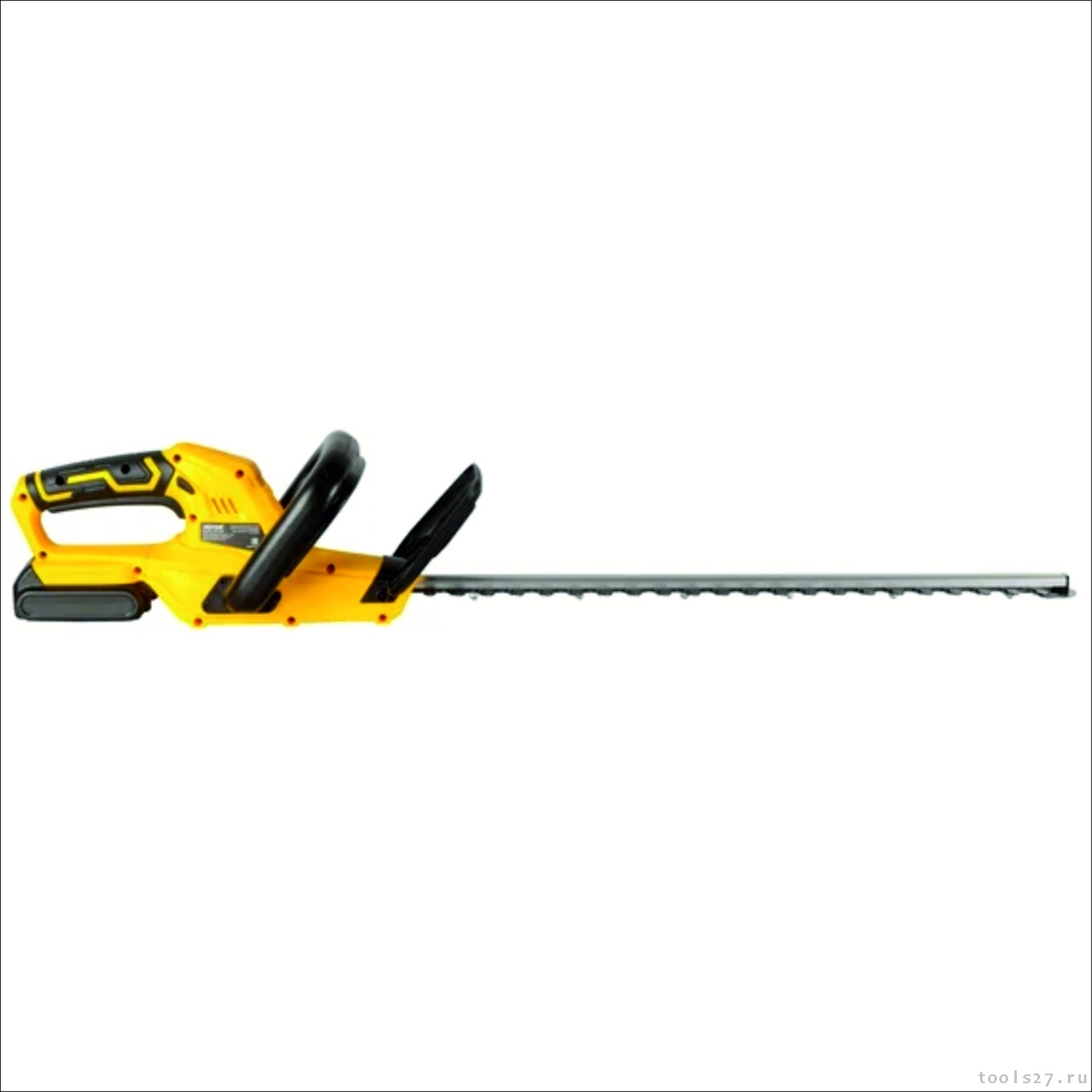 Аккумуляторный триммер-кусторез оснащен лезвиями длиной 520 мм. Это позволяет одновременно срезать большое количество веток. Двусторонняя заточка предназначена для веток толщиной до 14 мм. Такой нож работает в двух направлениях, имеет высокую скоростью резки и производительность. Максимальная частота его ходов составляет 1500 об/мин.
