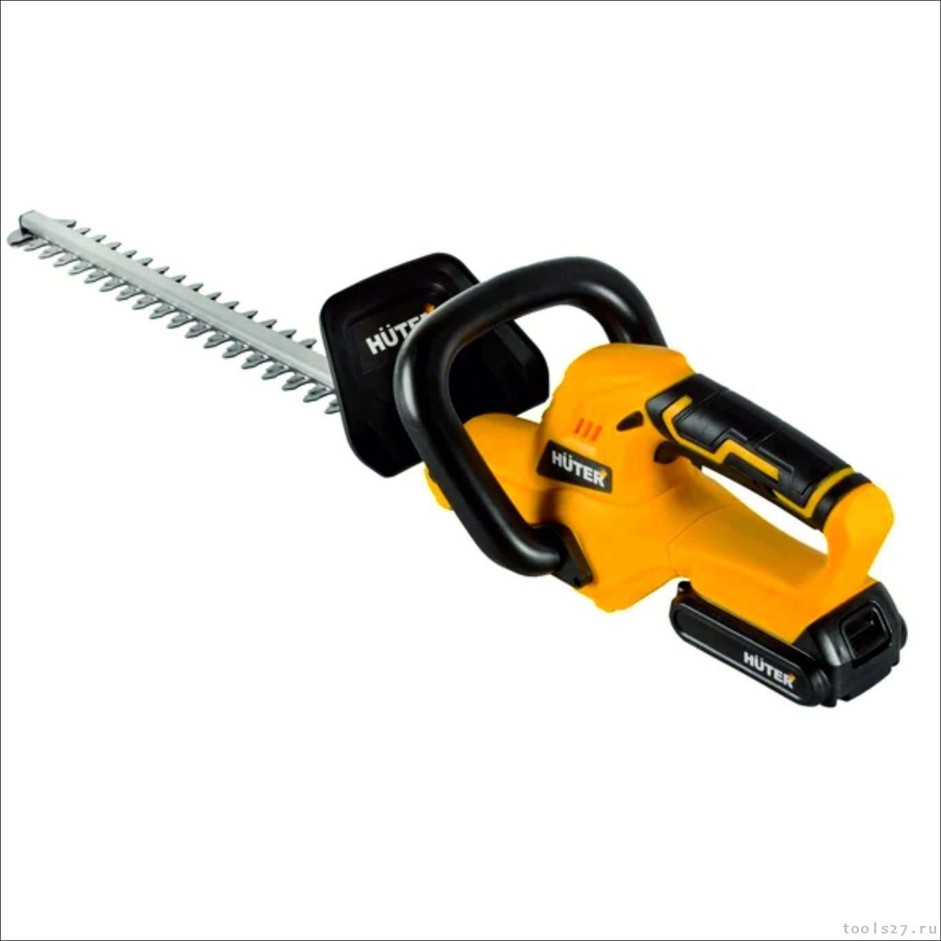 Модель Huter GET-20H имеет дополнительную прорезиненную рукоятку для более удобного хвата. Пластиковый щиток защищает от летящей листвы и щепок. Для компактного хранения в подвешенном виде предусмотрено специальное крепление. Аккумуляторный тип инструмента обеспечивает свободу движений без привязки к электросети и отсутствие выхлопных газов. Малый вес минимизирует напряжение при длительной работе.