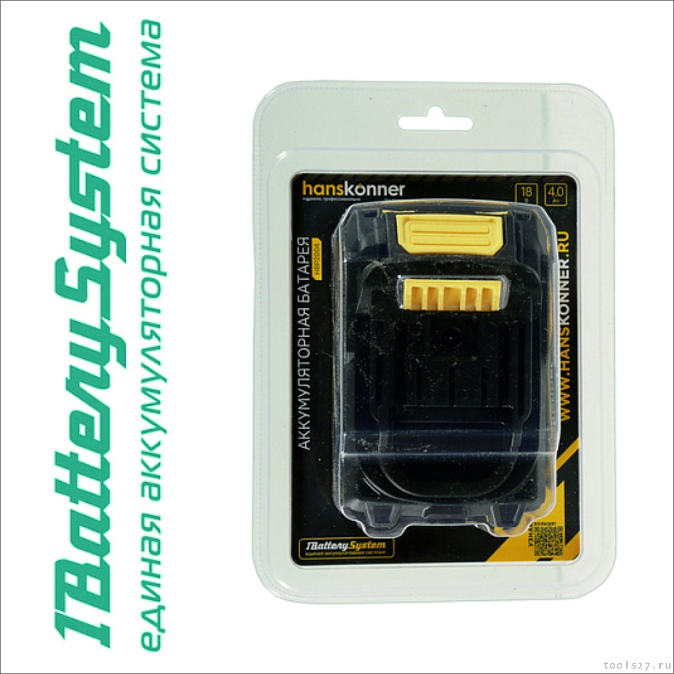 Аккумулятор Hanskonner 18 В, 1BatterySystem, 4.0 Ач, USB-разъем HBP2004 (2125)