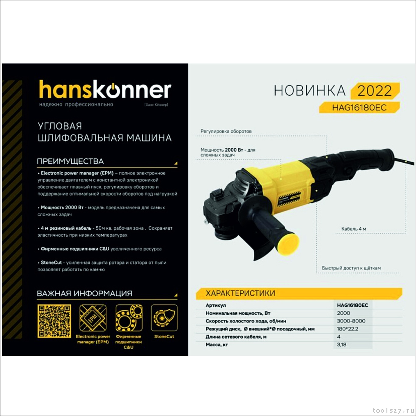 Болгарка (УШМ) Hanskonner PLATINUM HAG16180EC (2131)
