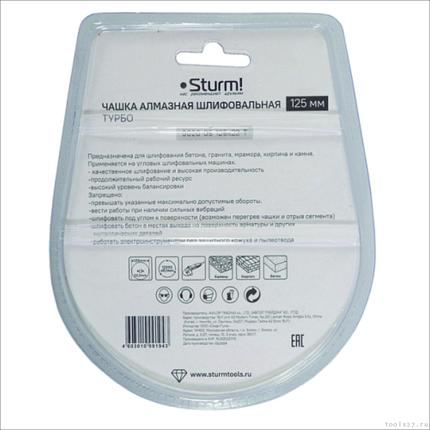 Чашка алмазная шлифовальная, 125x22мм, TURBO, 36 сегментов, Sturm! (2140)