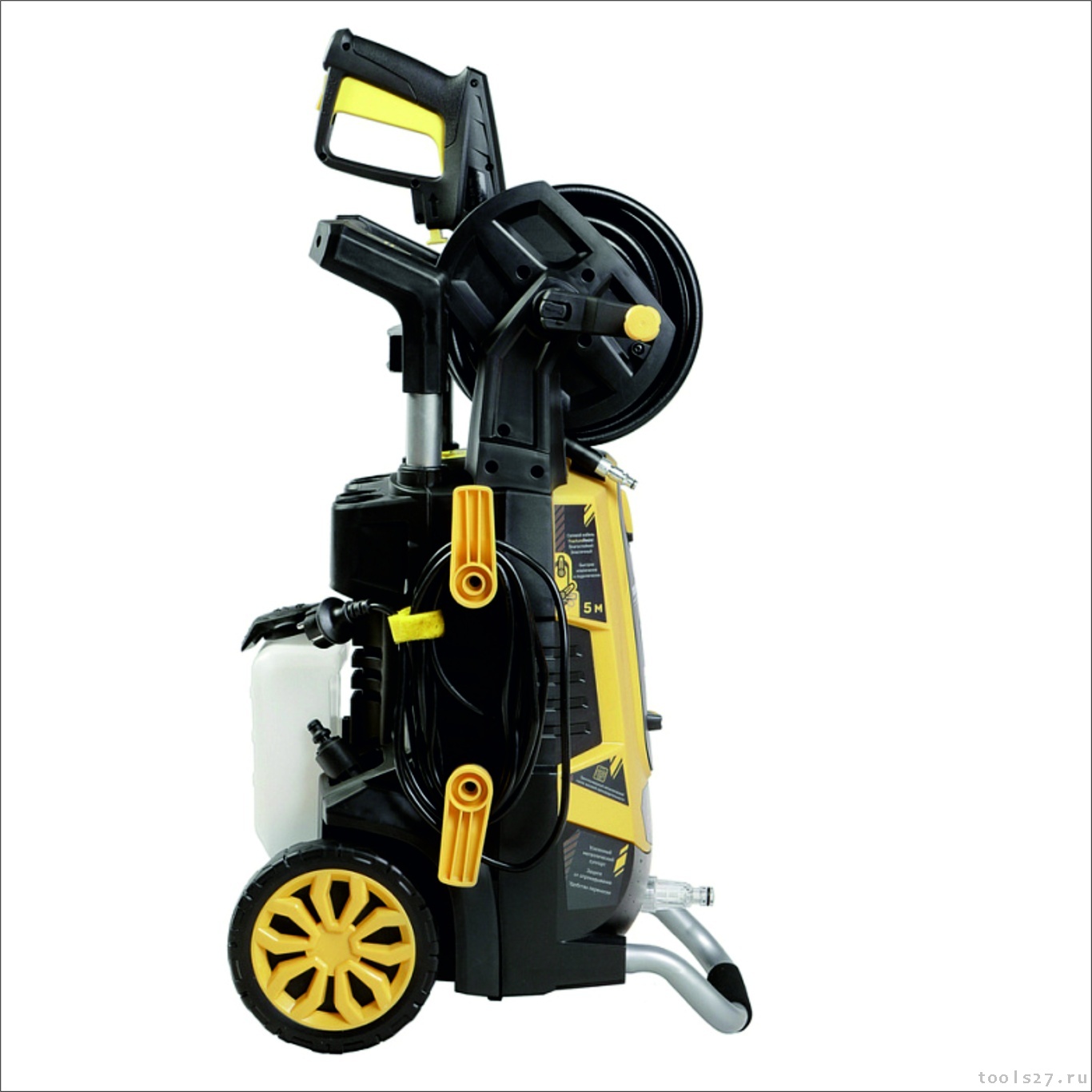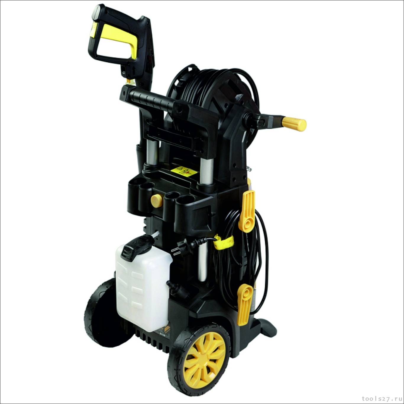 Асинхронный двигатель - низкий уровень шума и увеличенный ресурс работы. Увеличенный до 10м эластичный шланг высокого давления на барабане позволяет свободно мыть автомобиль, чистить крыши дачных построек и другие объекты не передвигая мойку. Благодаря своей эластичности шланг легко разматывается и сматывается на барабан. Профессиональный "итальянский" пено-генератор объемом 1 литр в комплекте обеспечит качественное нанесение густой пены. Дополнительная роторная фреза TurboNozzle в комплекте для работы с сильными загрязнениями. Быстросъемные соединения QuickConnect на шланге и оснастке для легкого подключения