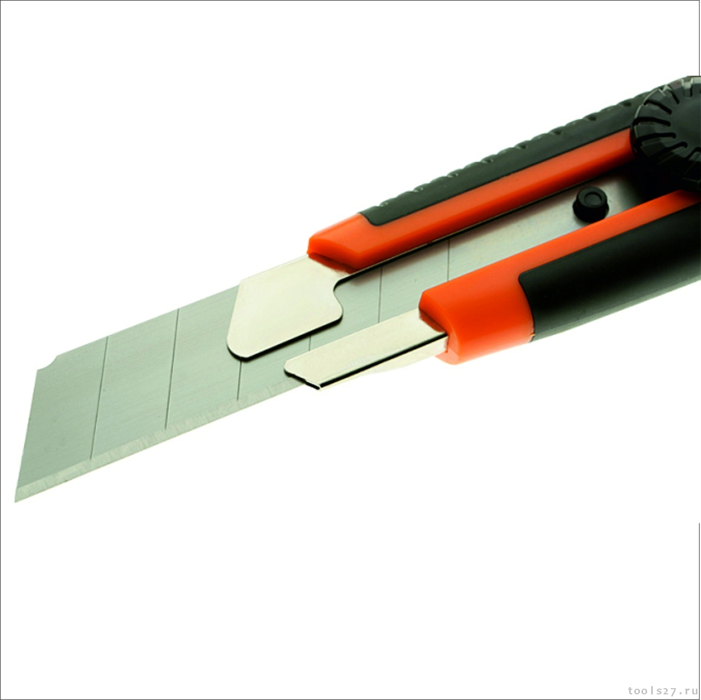 Металлическая направляющая поддерживает сохранность корпуса и дает возможность использовать нож для плотных и слоистых материалов. Надёжный винтовой фиксатор позволяет полностью заблокировать движение лезвия
